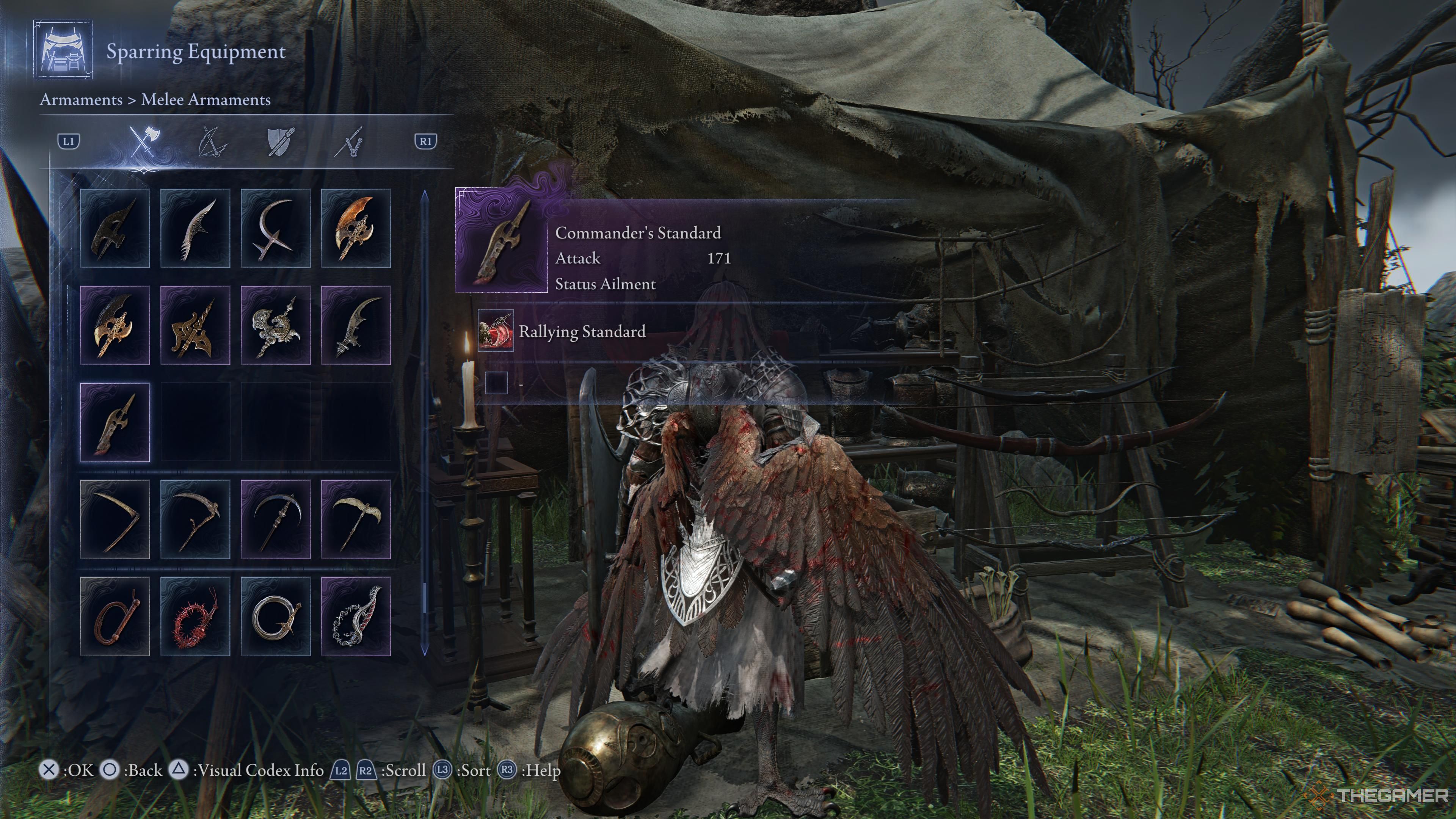 司令官の標準はhallであり、必ずしも簡単ではないものです。 Halberdsが武器の最良の選択でもないことはめったになく、シールドで使用できるGuardianの手で理想的になります。司令官の標準を際立たせるのは、その灰の戦争です。