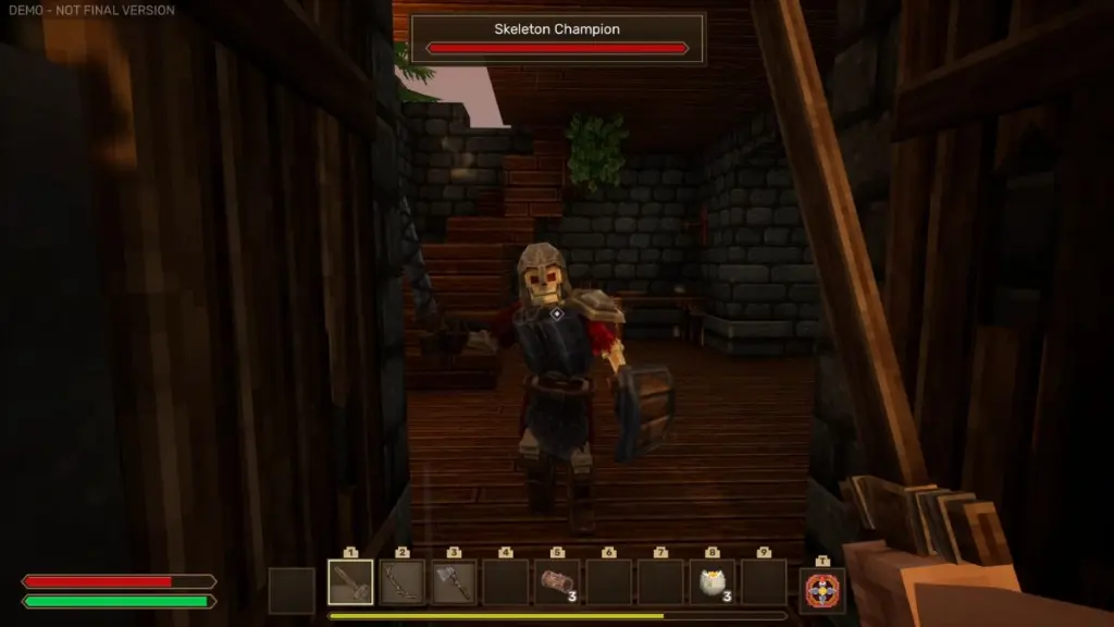 島に着くまでに長い時間がかかりました。船は上向きに飛ぶのがそれほど得意ではないことがわかりました。私は目的地に到着し、すぐにさらに 2 つのスケルトンを倒し、塔へのドアを開けると、スケルトン チャンピオンと呼ばれるものを見つけました。認めますが、私はパニックになりました。自分が負けていると気づいたときは逃げたこともありました。この時点で、飛行船は少しクールではなくなります。