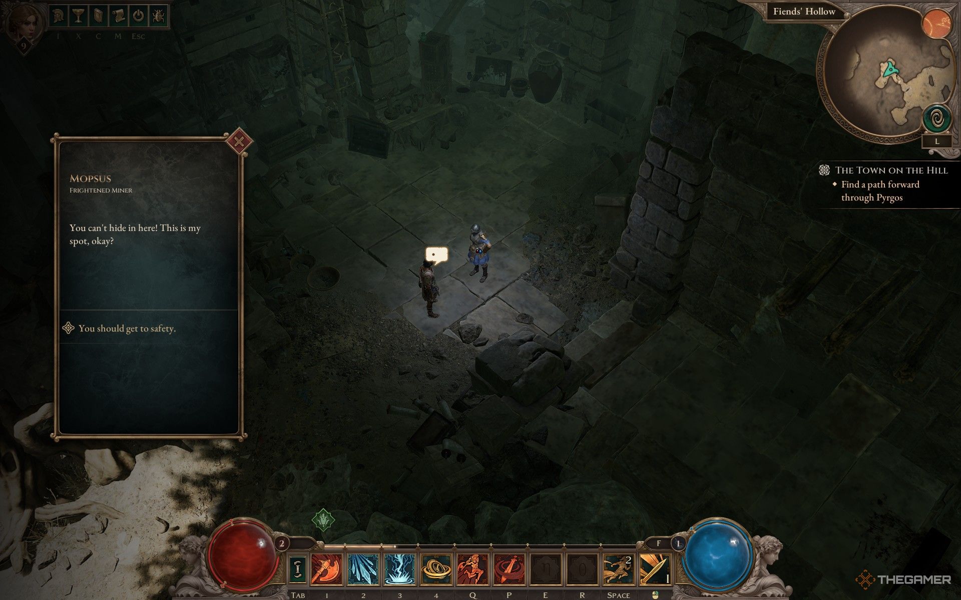 再びピルゴスの海岸に出て、ICTHIANSに囚われて街の外の洞窟に抱かれた一握りの怖い村人を探し出す必要があります。このサイドクエストを完了するには、悪魔の中空の火山パズルを解決します。