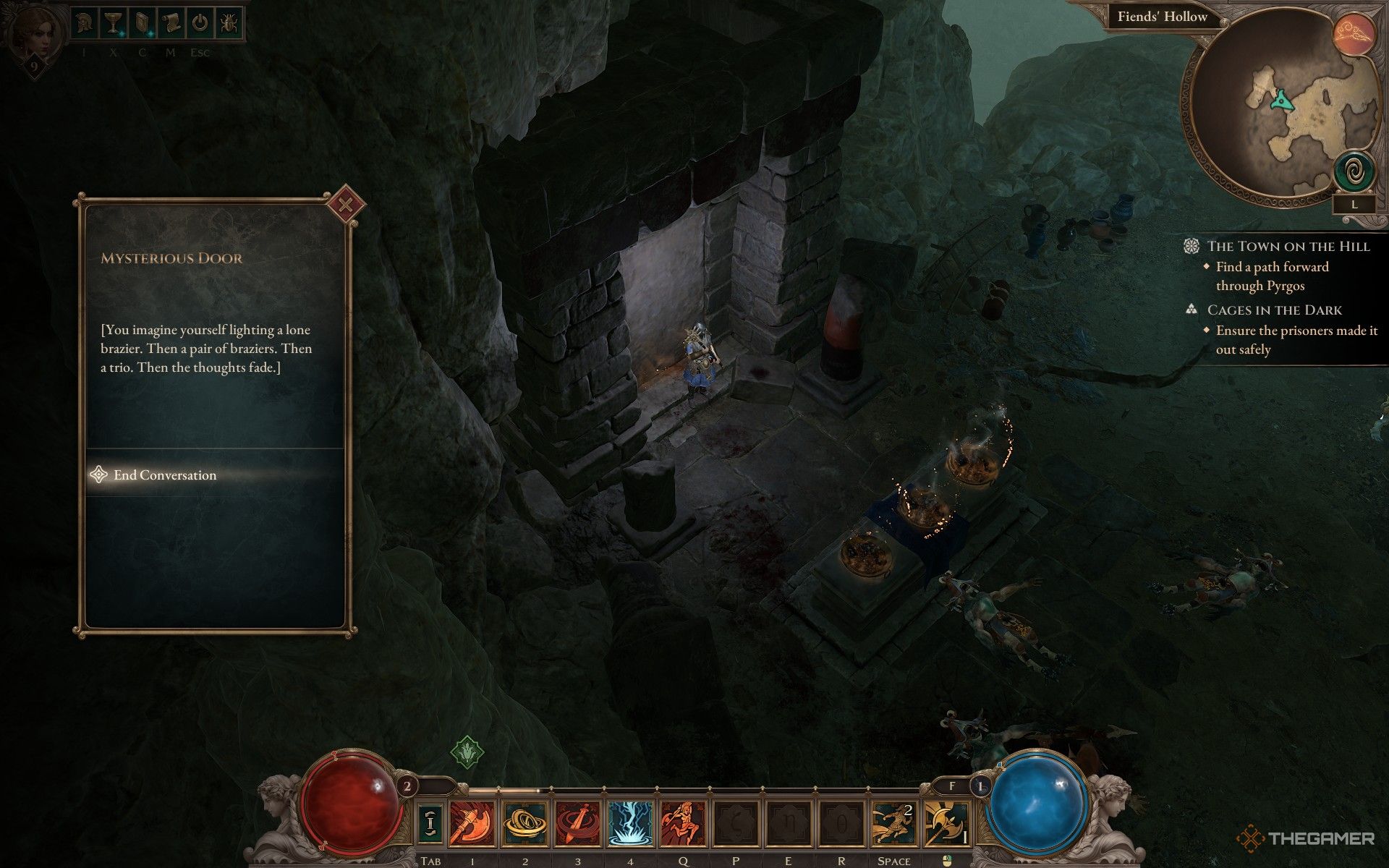 あなたは技術的にそれについて知りませんが、あなたが悪魔のくぼみの最終的なエリアに到達するまでそれについて知りませんが、それはいっぱいに満たされますあちこちのicthianの敵、特に訪問する必要がある場所の周り。あなたは見ているでしょう相互作用可能なブラジャーあなたは火をつけることができますが、あなたがそれらを正しい順序で照らしない限り、それらは明るいままではありません。