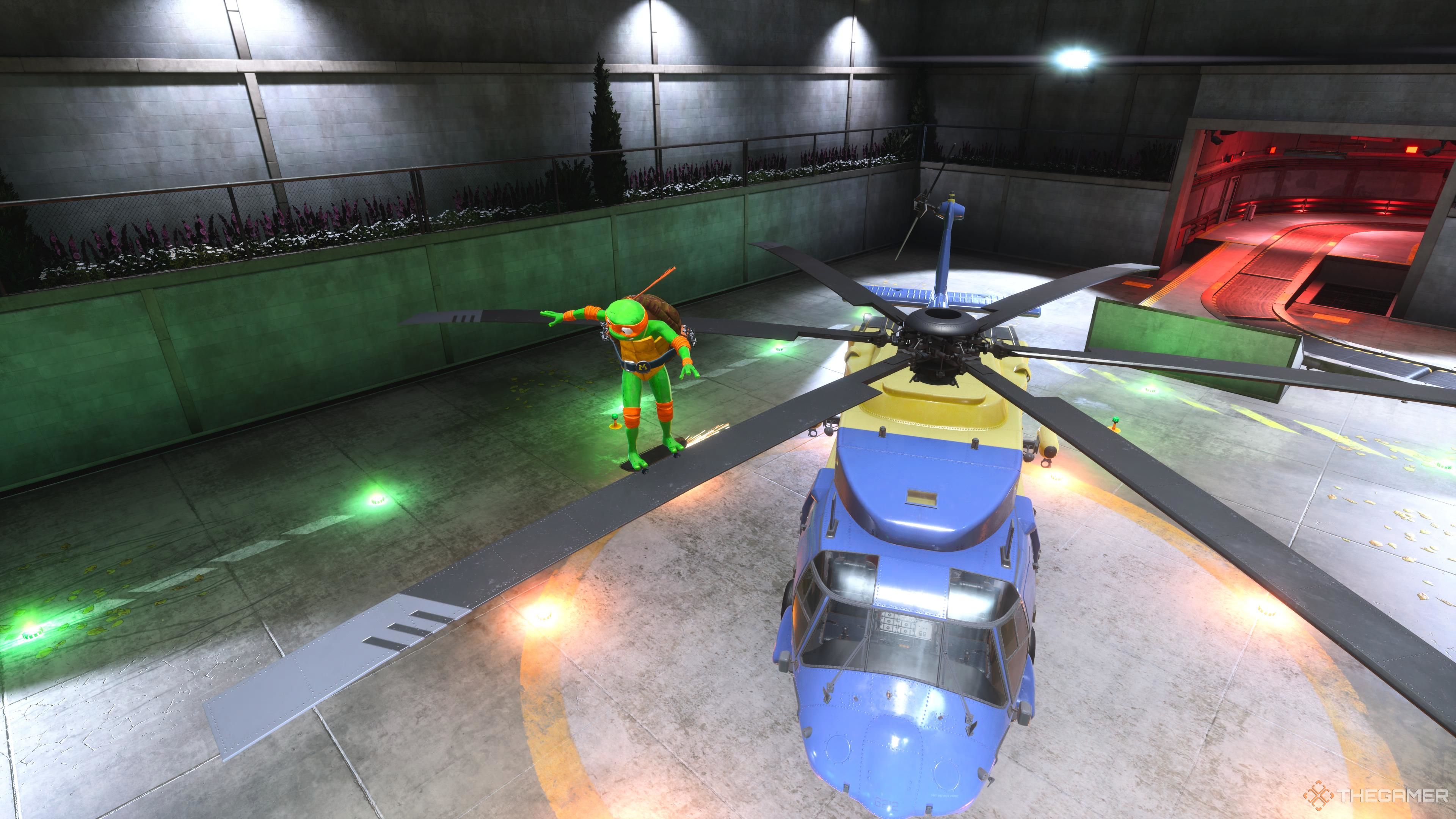 これは非常に簡単です。ステージの初めに、右側のカウンターの上に飛び乗ってください、および手荷物チェックコンベアベルトに粉砕します。これにより、ヘリコプターの刃を粉砕できるヘリパッドに移動します。
