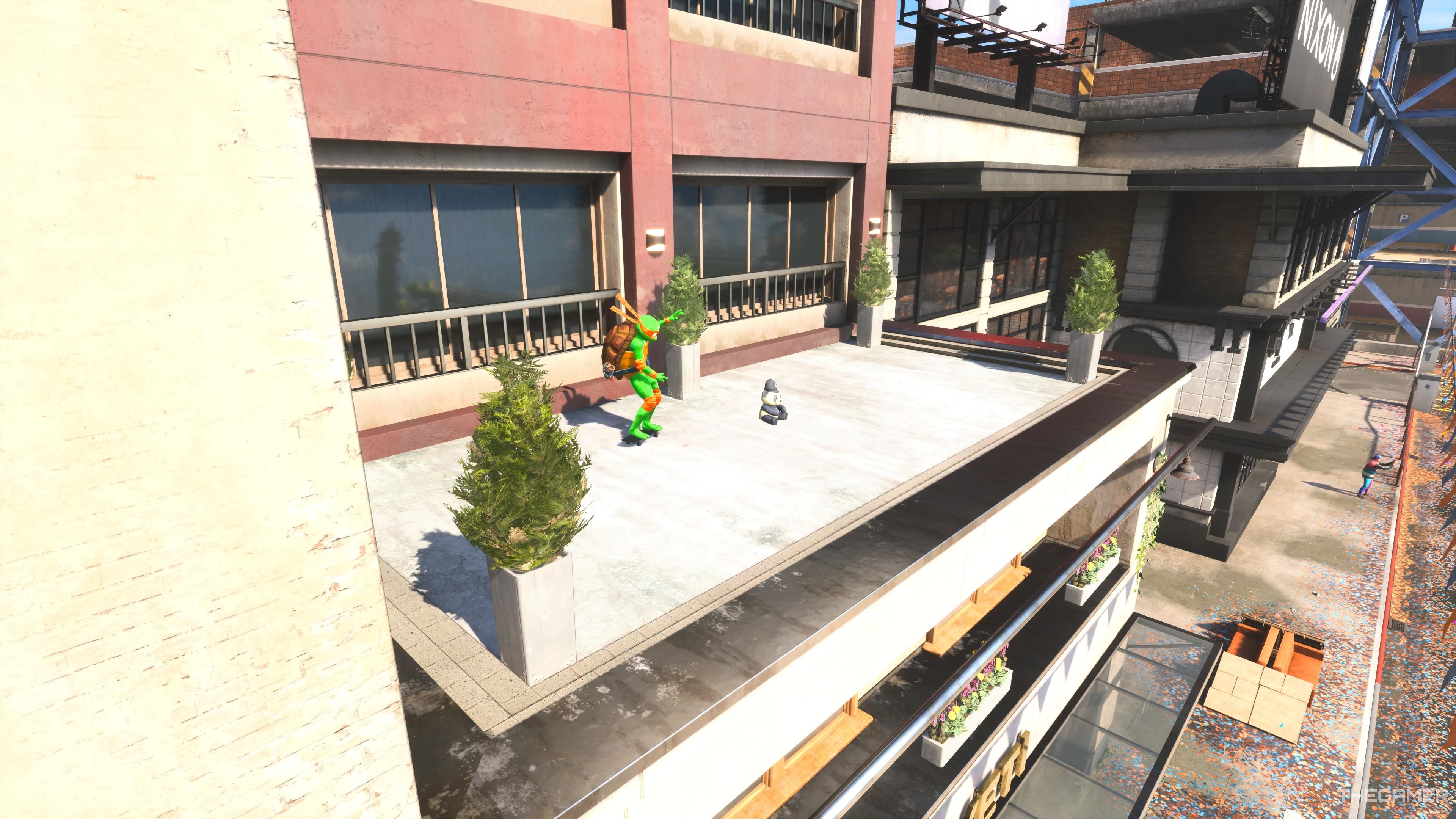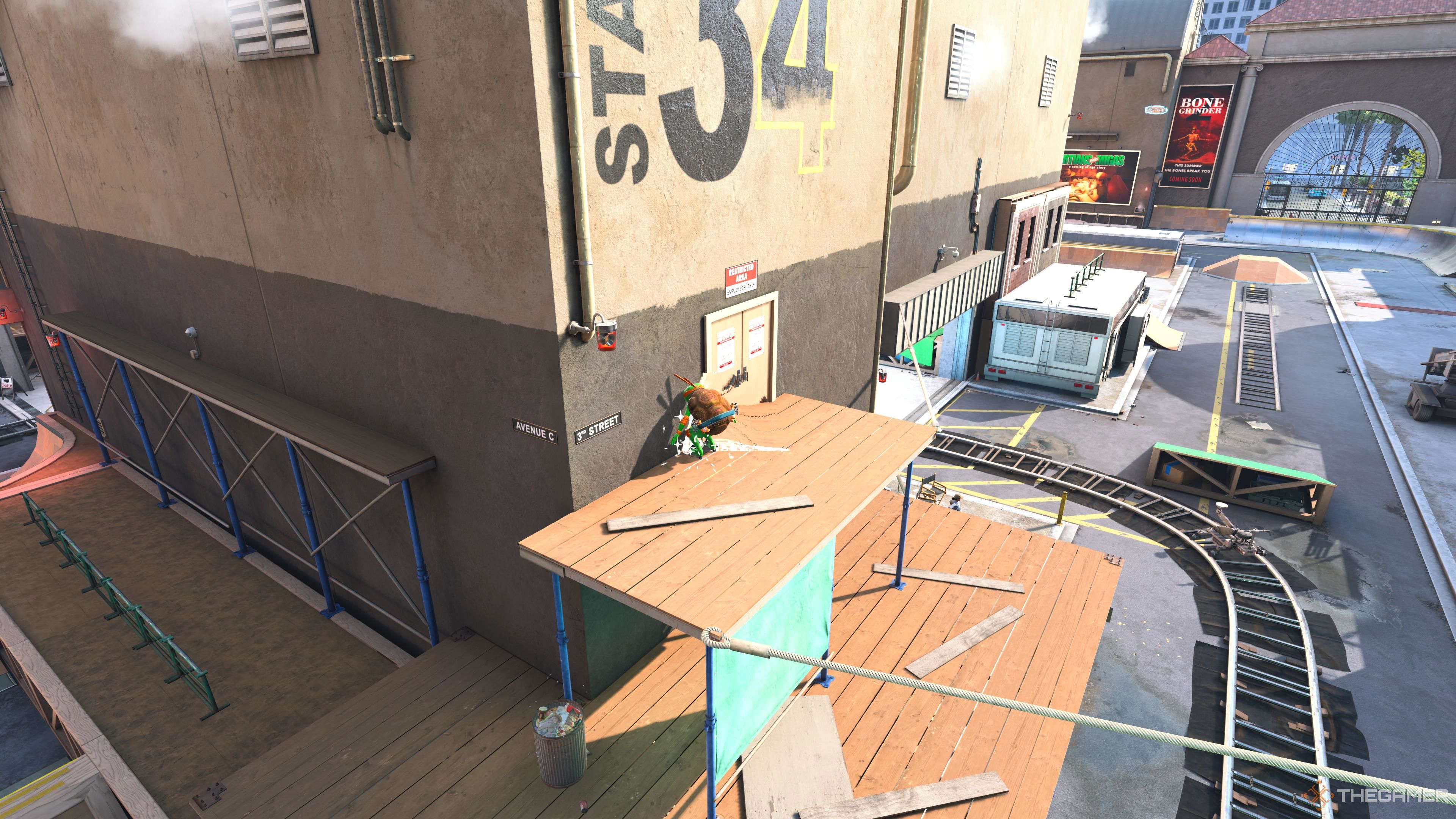 そのワイヤーは、パンダがオンになっているガードタワーのプラットフォームに直接連れて行ってくれますが、あなたはそれにジャンプする必要があります、あなたが着陸する手すりがあなたを下の別の建物にあなたをcareenすることを送ります。ジャンプを行うときは、グラインドボタンを押さないようにしてください。あなたはレールを挽きたくありません、もう一度、それはあなたをプラットフォームから飛ばすようにします。
