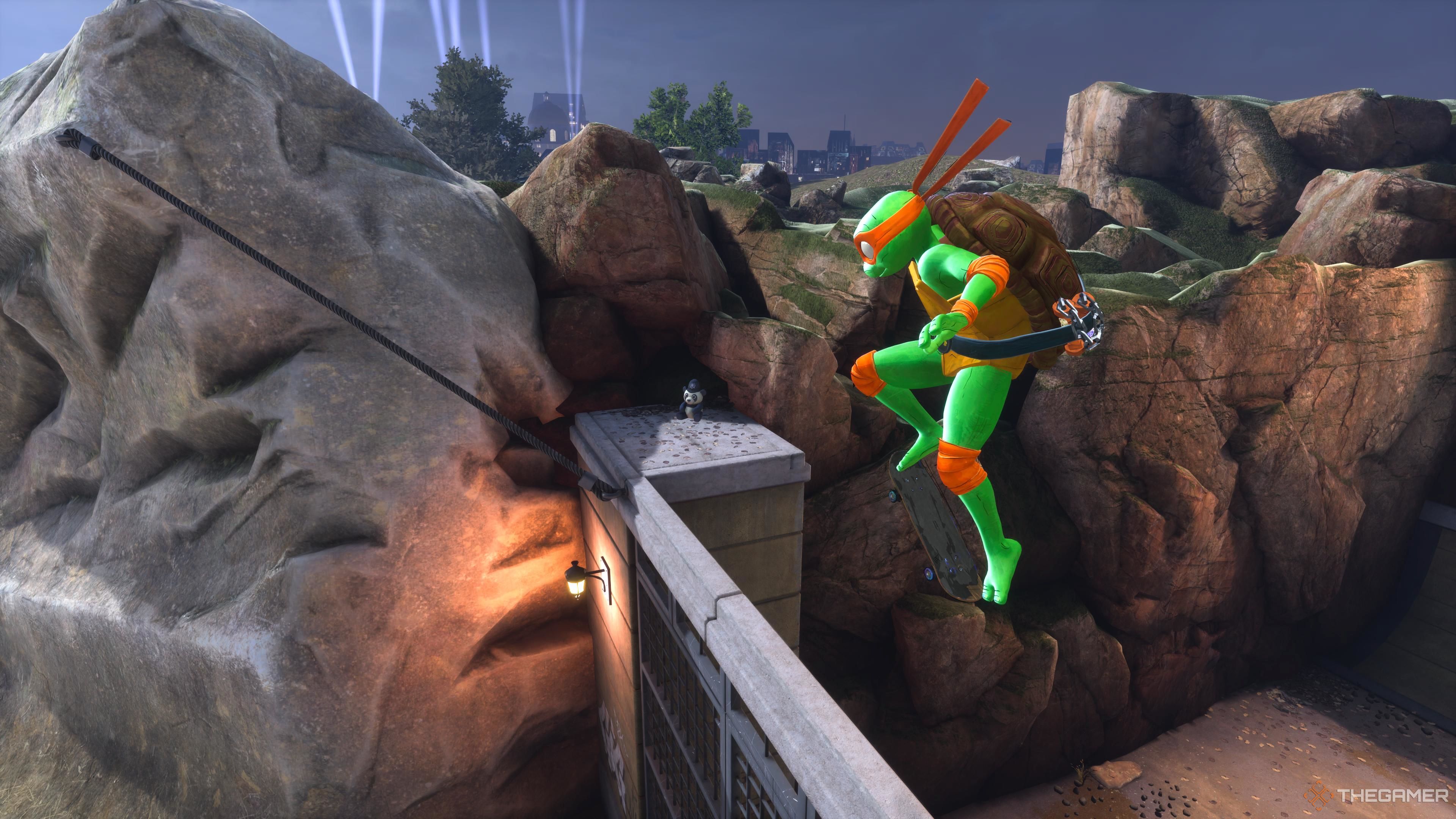 さて、屋根の上にいたら、フクロウの落書きで飾られたランプ型の出口を探してください。ゆっくりとランプを上って、それにつながれたケーブルを粉砕します - あなたはあまりにも多くの速度でこのグラインドを打つことを望まない。これにより、近くの灯台、屋根の周りに連れて行き、ワイヤーにドロップして、ガードタワーに連れて行ってくれます。ワイヤーにドロップしているときは、グラインドボタンをもう一度押す必要があります、だからそのために自分自身を準備してください。