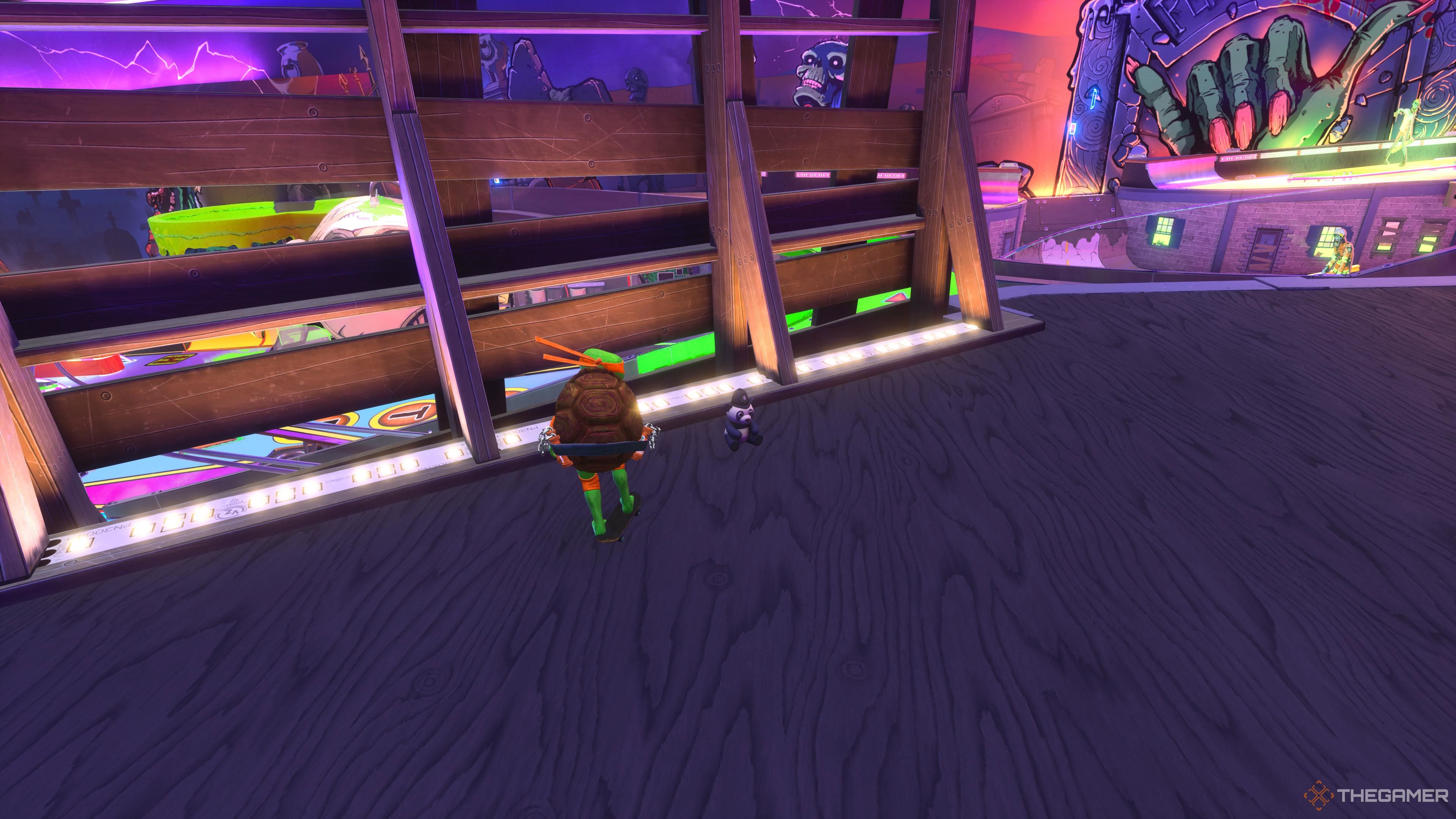 このパンダはそうですステージの秘密のセクションで。この領域を開くには、ステージの左側の巨大なサインを通り過ぎる必要があります。オープニングエリアのランプから自分自身を立ち上げて、この場所に到達することができます。一連のランタンに沿って粉砕します。ステージの隠されたセクションに着いたら、ランプのすぐ下に行きます。この段階に入ったランプの下を移動する棚がここにあることがわかります。彼らに粉砕しますが、途中で止まります。パンダは、ここの中央の小さなプラットフォームで休んでいます。