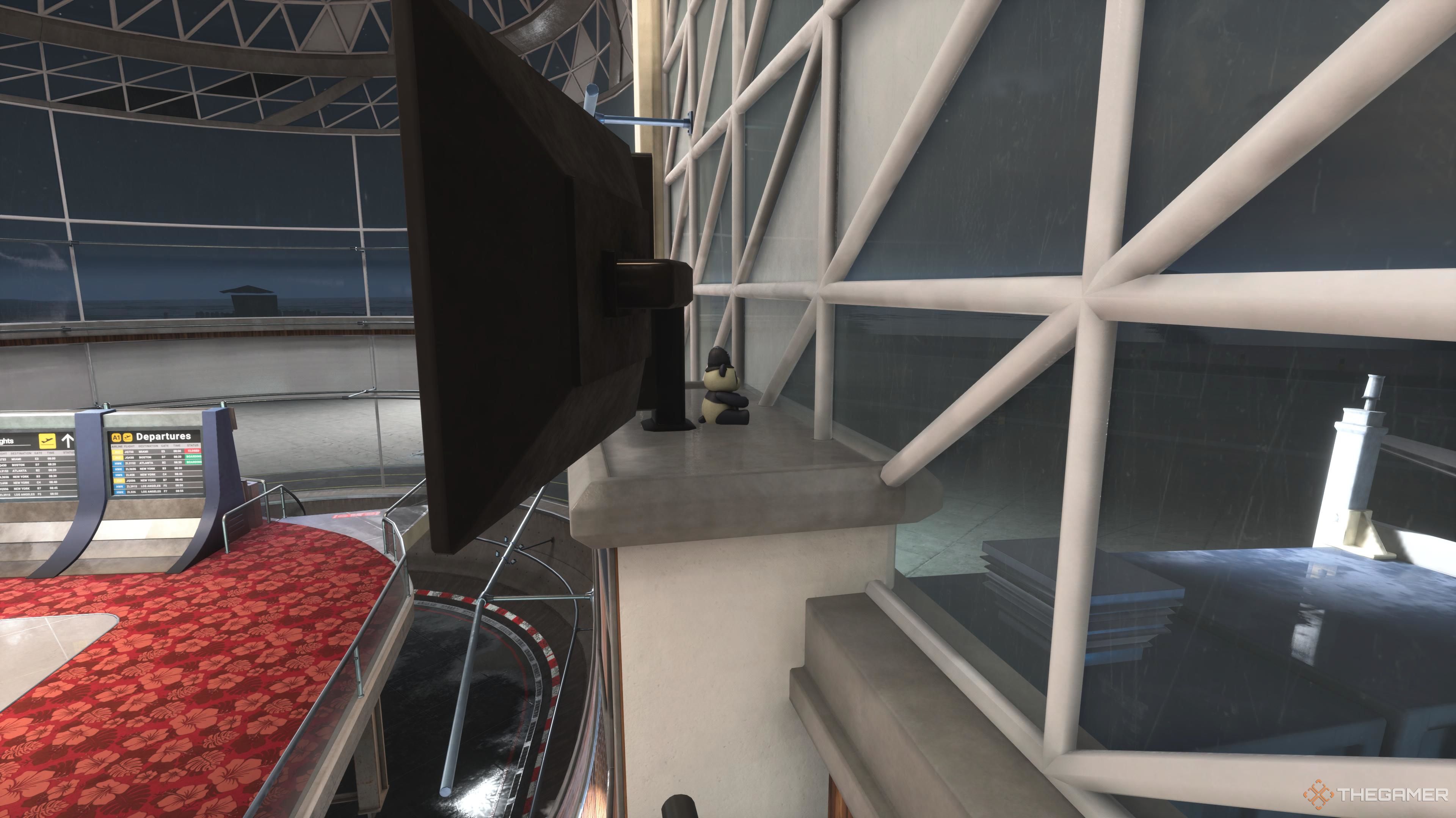これは、ゲームで見つけた最初の残酷に難しいパンダです。通常のように空港を通り抜けてください。搭乗門でエリアに着いたら、左に出ます。あなたは見るべきです搭乗ゲートC2、出発しています東京。私たちが求めているパンダゲートの上のモニターの後ろ。これらのモニターを背負って前進しながら、ランプを立ち上げてください。