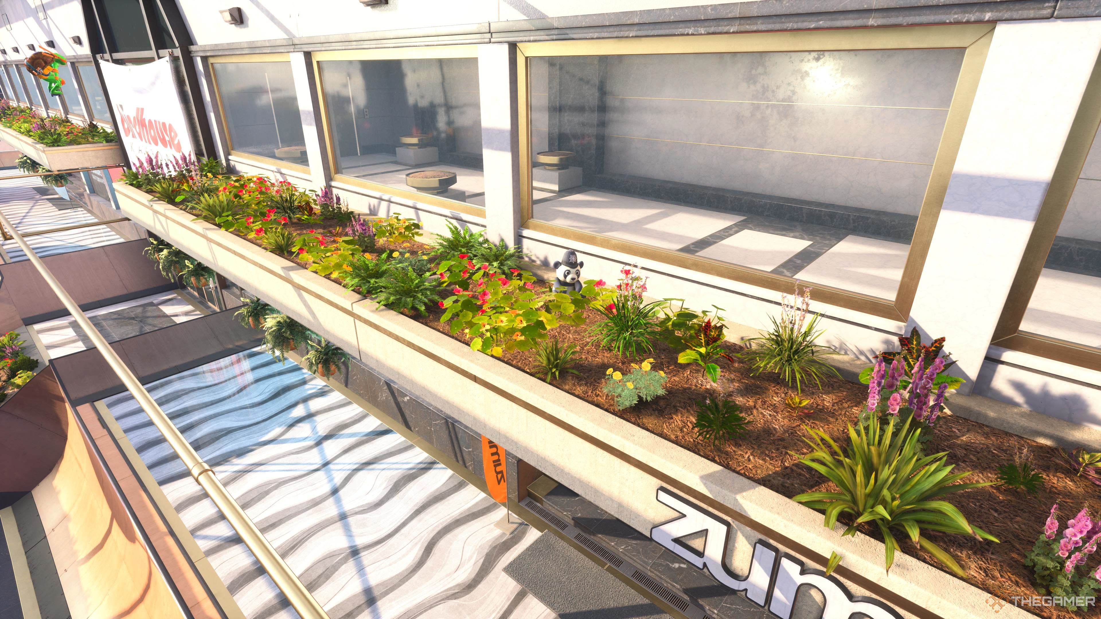 ステージの出発点から、船の右側にジャンプします。壁に並んでいる大きなプランターボックスが表示されます。彼らに向かってランプします。あなたが壁に面しているなら、パンダは右側のプランターの上に休んでいます。