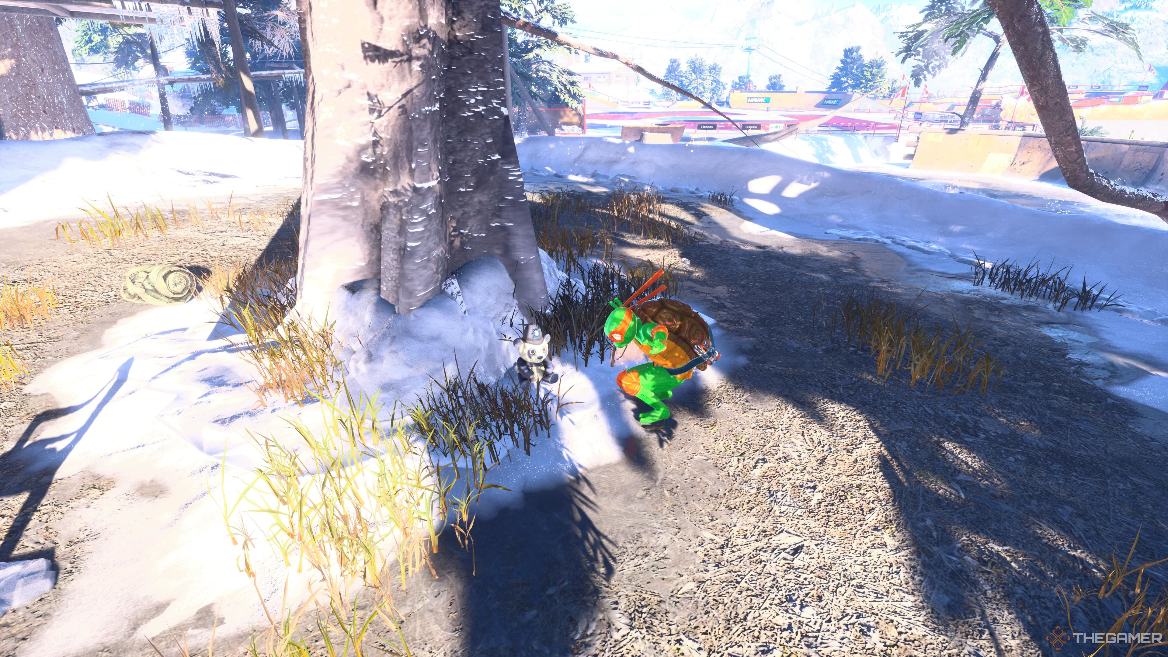 リオパンダは、ゲームで最も簡単なものの1つです。開始ランプから、あなたの右を見てください。噴水が見えますステージの隅に位置しています。あそこをスケートするだけで、パンダがその噴水のすぐ隣の低木の前で冷えているのがわかります。