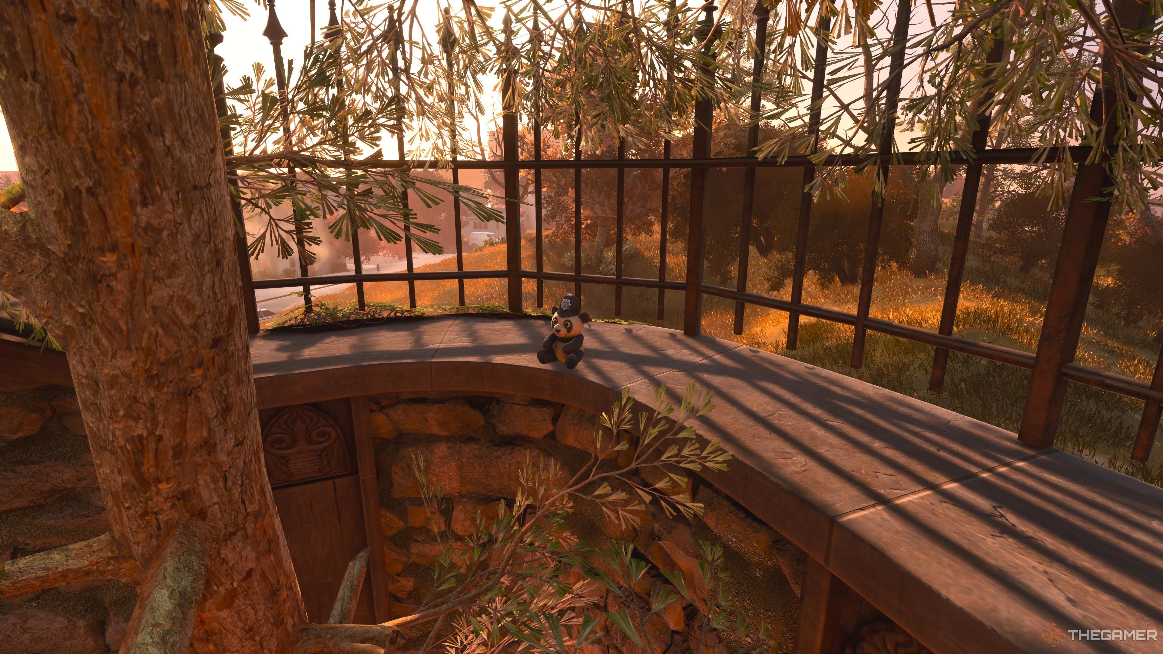最初にやりたいことはです に駐車施設の2階に向かいます(生徒が教授の車を盗む場所)。角に沿って走る角にケーブルが表示されます。あなたが近づくまでそれを挽きます植物が並ぶ屋根。その屋根に飛び乗ると、パンダがその真ん中に座っていることがわかります。
