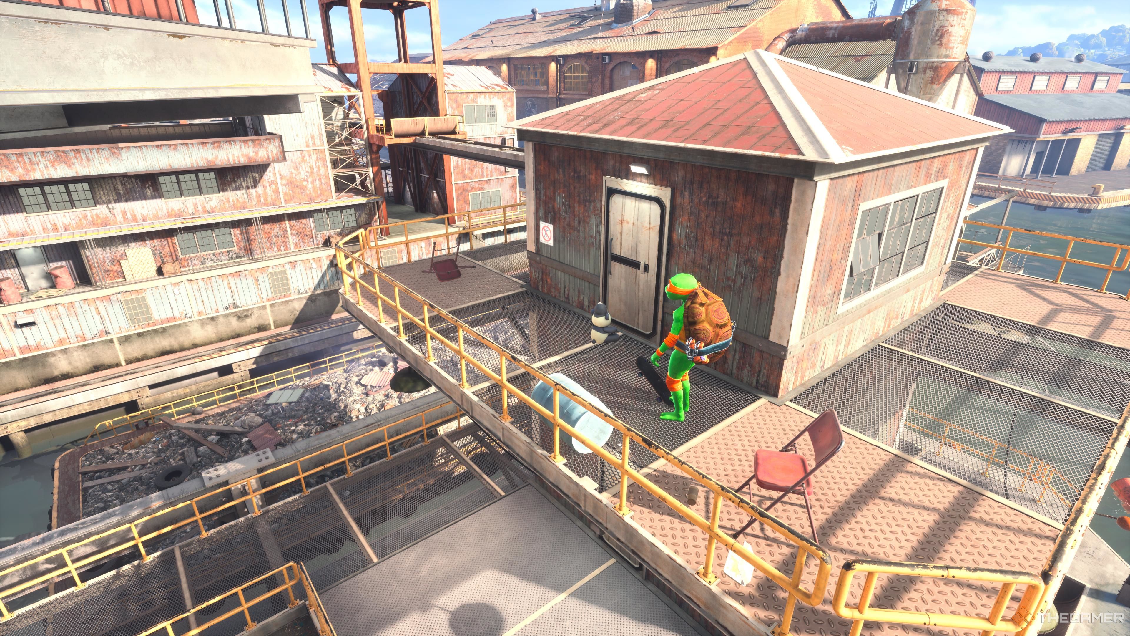 このパンダは建物の1つを囲む通路に座っているのを見つけることができます開始場所の左側の桟橋の近く。屋根に乗ることから始める必要があります。だから、最初の左を、次に次の右に進みます。ドアのオープンセットが表示されるはずです。内側に向かうと、屋根に運ばれます。これの横にある屋根に飛びつきます。さて、桟橋までずっと走る通路を探してください。その通路をずっと下に進むと、パンダと一緒に建物の頂上に到達します。