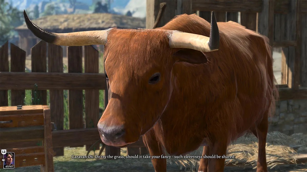 私が大好きなもう一つの初期の相互作用は奇妙な牛Druid's Groveから。彼はあなたがそこで出会う3番目の牛です。最初の2つは漫画の救済を提供し、宝物を持って干し草の山に向けてください。彼らにも叫ぶ!