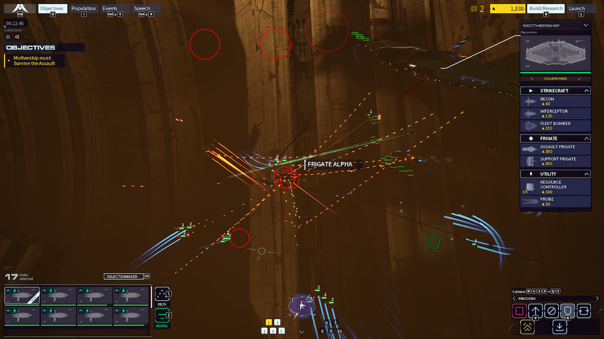 同時に、Pを押すことでユニットの総人口に注意してください。多くの船を失って戦闘を失ったことに気付いた場合は、戦術的な一時停止を確認し、母船を選択し、より多くのユニットを構築します。時間が経つにつれて、あなたは常に展開するのに十分な火力を持っているように、このミッドコンバットを行うことに慣れます。