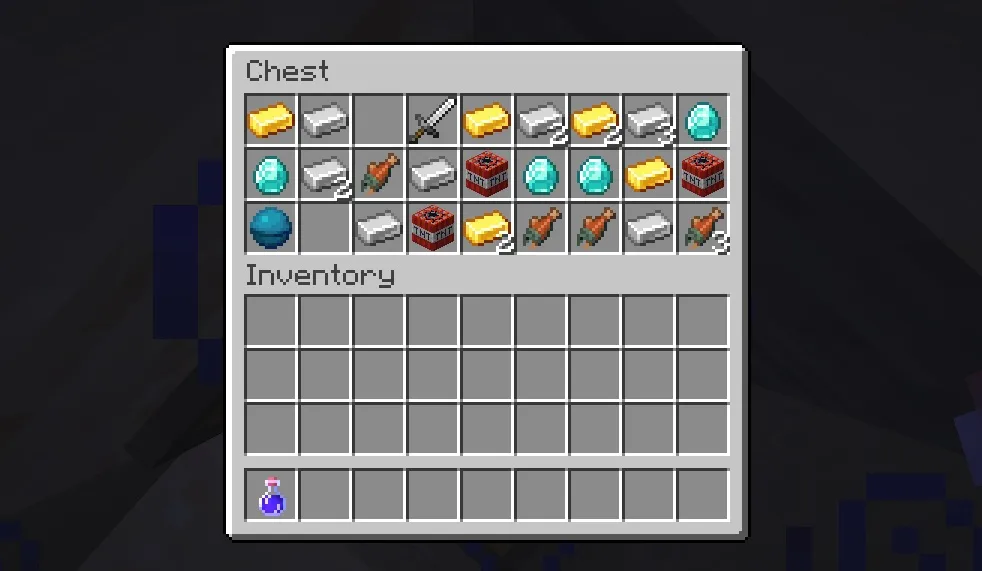 神殿内の4つのチェストには、次のようなグッズが詰め込まれています。