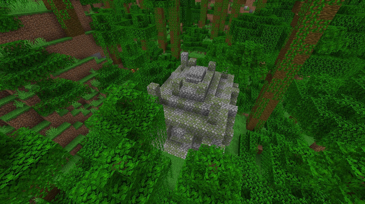 ここでは、かなり大きなジャングルバイオームの真ん中にスポーンします。次の座標には3つの寺院が散らばっています。