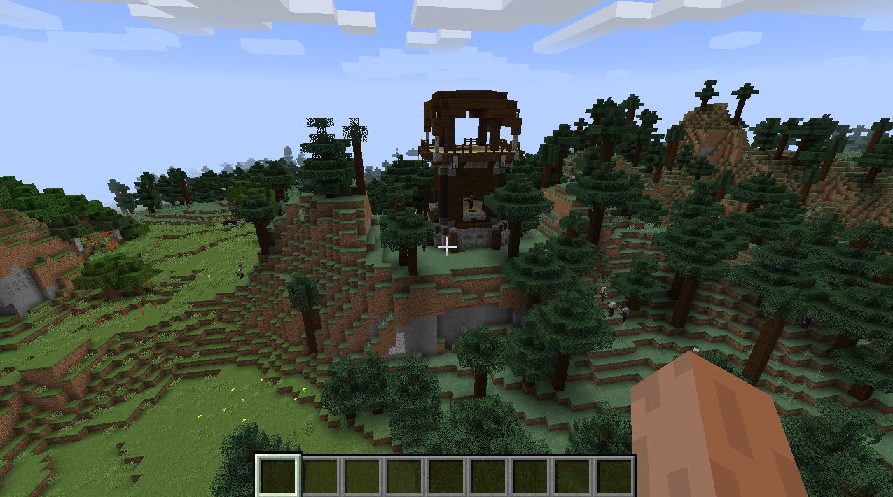 この種では、いくつかの印象的な丘の端に出現します。 Coordinates 550、350で東に行くと、Pillagerの投稿が見つかります。