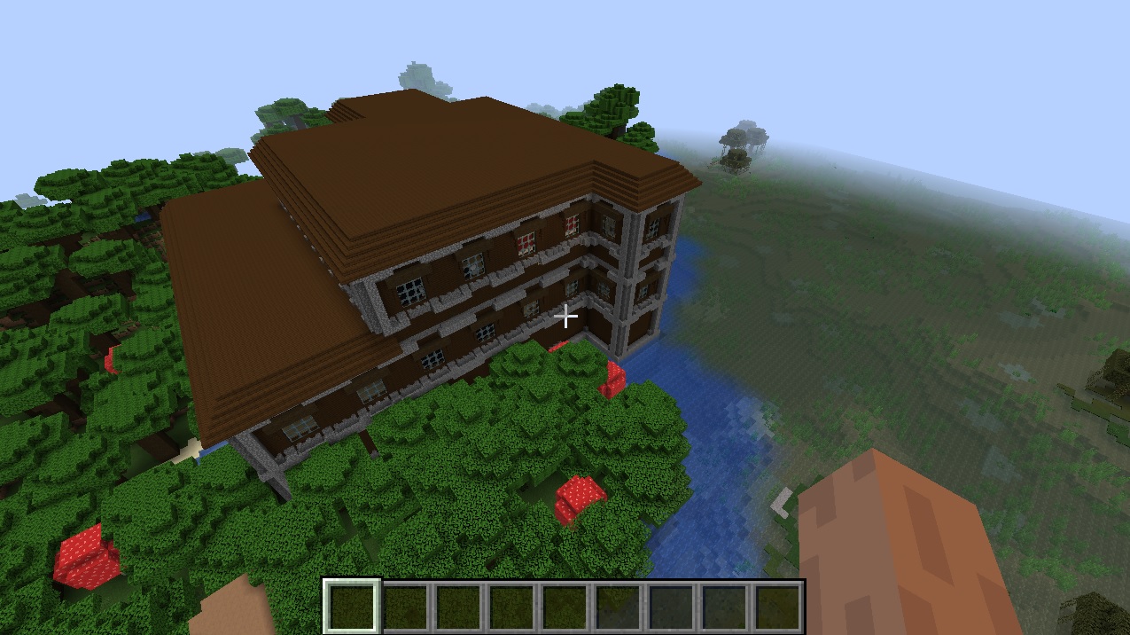 スポーンポイントから約1,000ブロック離れたところに、座標-1100、600の沼地に立っている巨大な3階建ての森林大邸宅を見つけることができます。