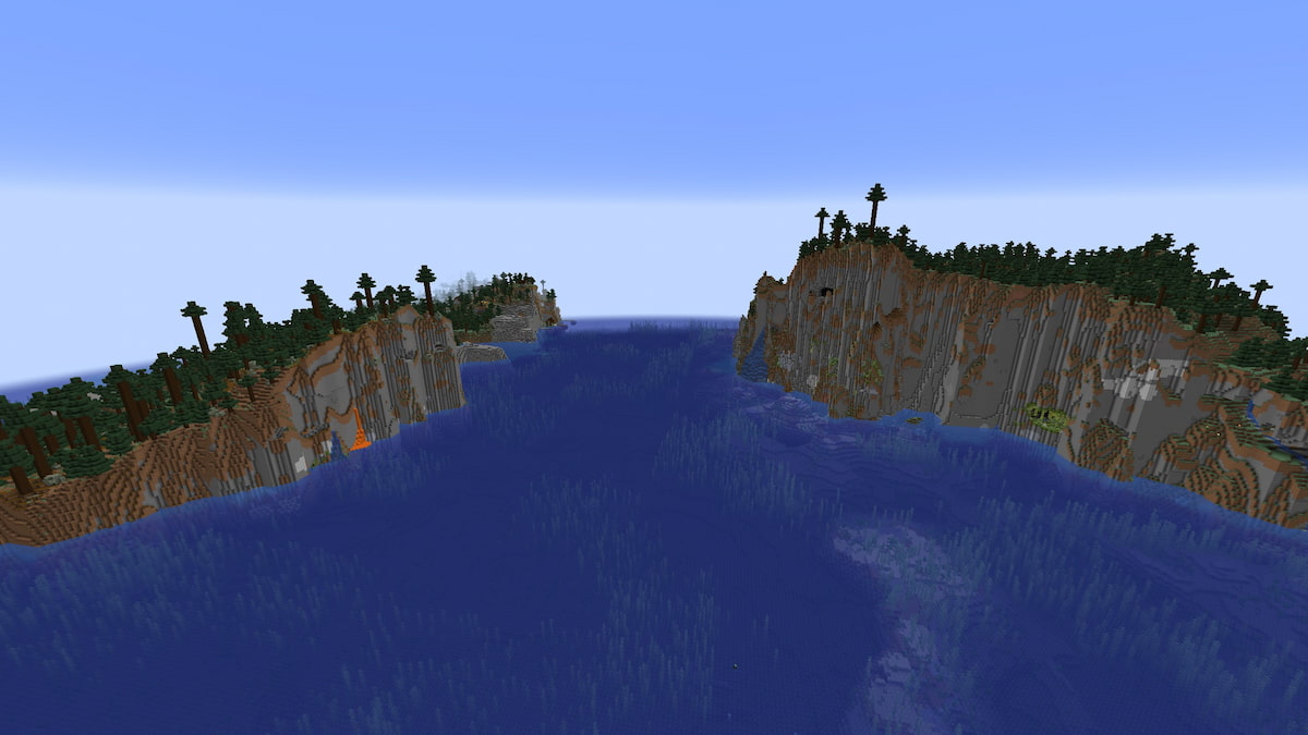 サバイバルアイランドは、Minecraft 1.18のあらゆる種類の形状とサイズがあります。この種の島は、崖側の村がある山のようなタイガバイオームで作られています。この島は、古い成長のタイガバイオームを含むいくつかの島の隣にあります。