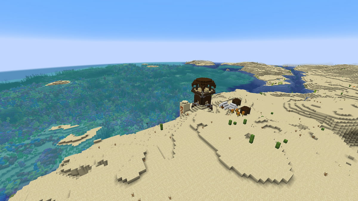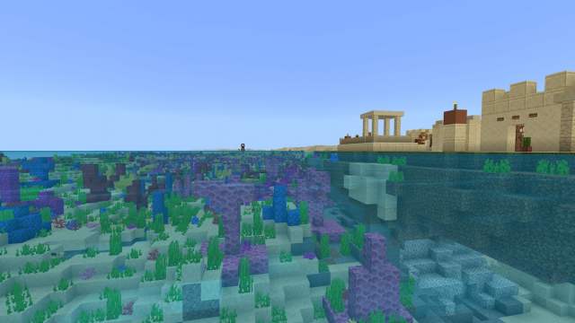 サンゴ礁があなたのお気に入りのMinecraftバイオームの1つである場合、この種はあなたのためです。スポーンに最も近い砂漠の村は、カラフルなサンゴ礁の上の海に伸びています。海を見渡すと、水の反対側にピラーズの前post基地が表示されます。リーフ自体には、予期せぬ量の宝物が確実に含まれていると確信している構造と洞窟の入り口が詰め込まれています。