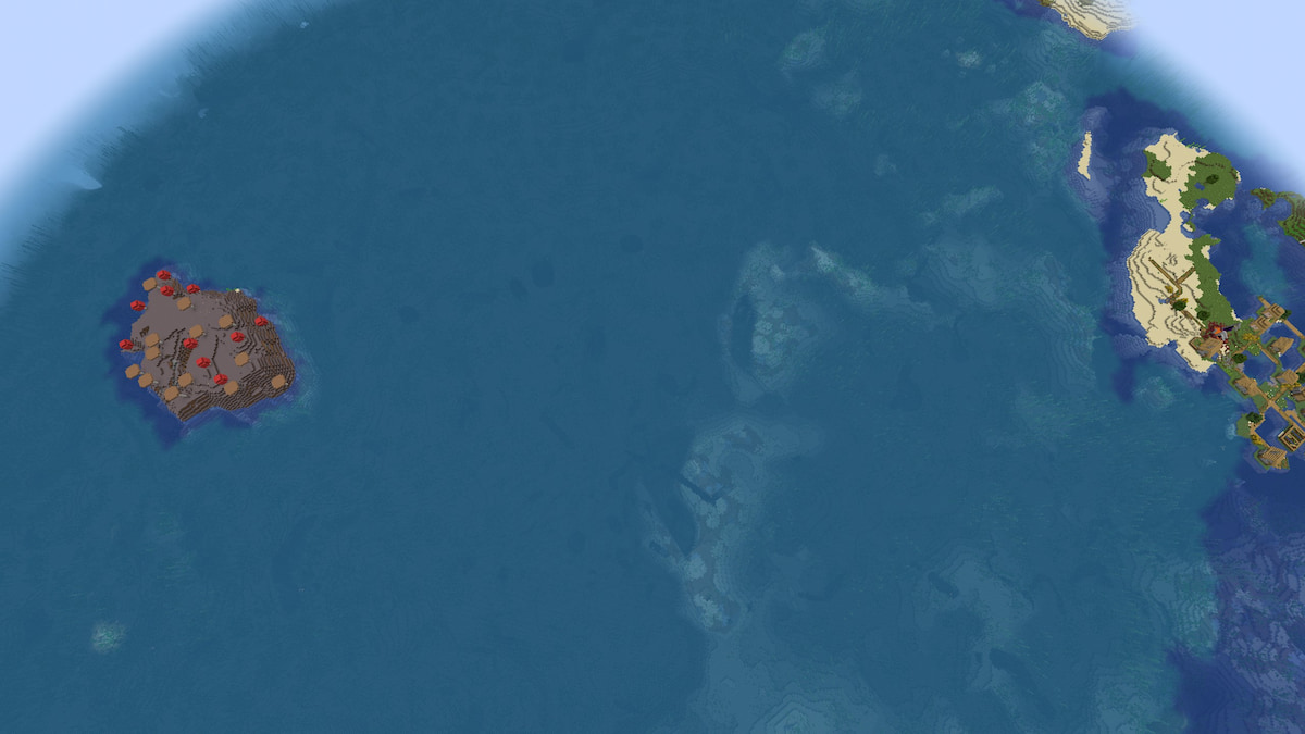 2つの異なる村のある小さな島が、スポーンの北の海にあります。この島は本土に非常に近いので、到達するのは簡単です。これらの島の村の代わりに、岩盤の選手は本土に同じ村を持つでしょう。ボーナスとして、スポーンにも非常に近い小さなキノコ島があります。