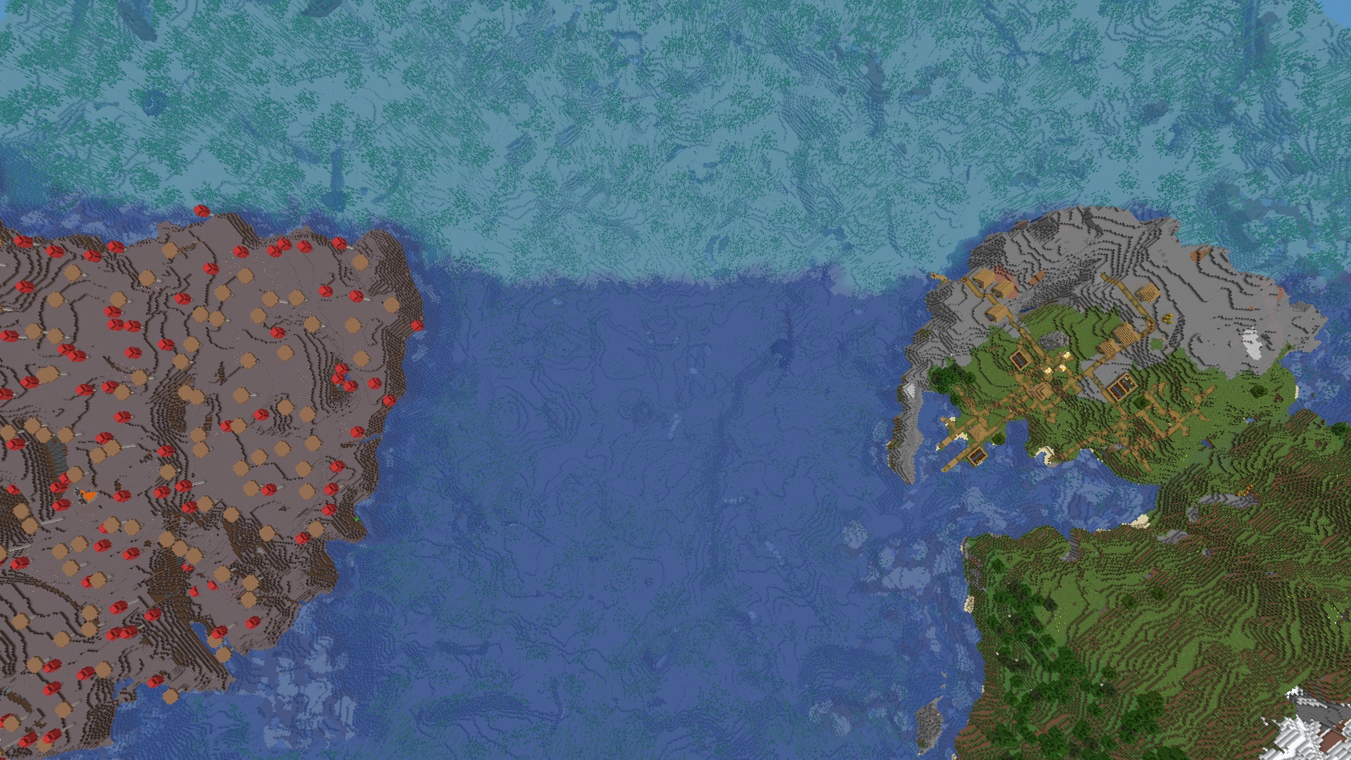 ここでは、村と西にかなり大きなマッシュルームの島があるオーシャンショアに出現します。 Coordinates -400、-300には、マッシュルーム島の中央に台無しにされたポータルもあります。