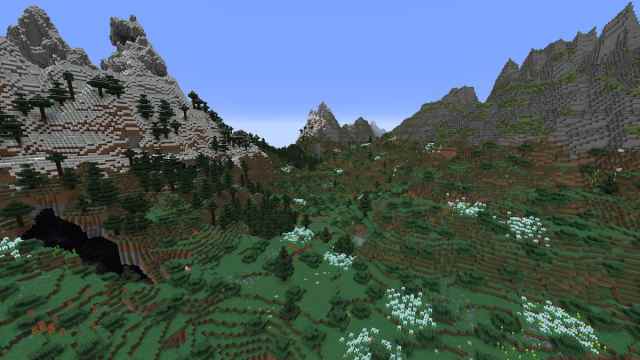 フィールドバイオームは、この種の複数の雪の山と岩山の山の間に峡谷を満たします。フィールドには、さまざまな花と、受動的な暴徒、ミツバチ、木がいっぱいです。スポーン周辺の地域の山の下には合計3つの古代都市があります。また、山の南にあるいくつかの山と2つの追加の古代の都市の上に2つのピラーガーの前post基地があります。