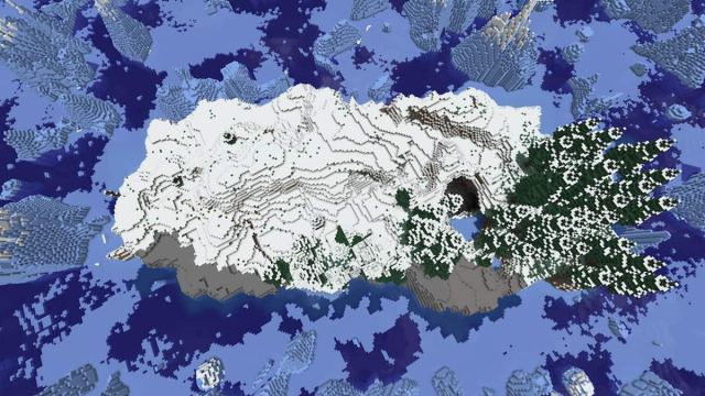 スポーン時にバイオームから隣り合っているバイオームからいくつかの寒いバイオームを見つけることはあまりありません。この世界は、あなたの後ろにトゥンダと氷のような川がいるムスケグのバイオームから始まります。しかし、この世界の真のハイライトは、目の前のエリアを覆うスノーブロッサムグローブです。それは本質的にMinecraftのCherry Grove Biomeの冬のバージョンです。それは3つの中で最も希少なバイオームなので、できる限りそれを取り入れてください。