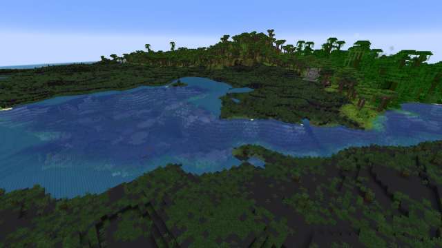 バニラ・ミネクラフトのマングローブ沼地のように、森を水と組み合わせたバイオームのバイオームには、バイオームのバイオームにはユニークな美しいものがあります。この熱帯雨林は、水路の表面に散らばっているリリーパッドを備えた海草とウォーターグラスで覆われています。生い茂ったグリーンズのバイオームから熱帯雨林に入りますが、反対側に珍しい火山平原バイオームを見つけることができます。