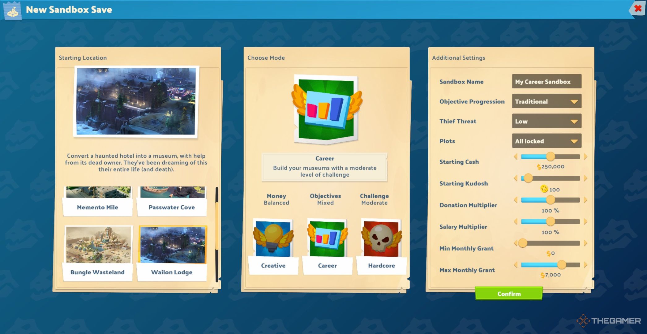あなた単一の場所にロックされていませんサンドボックスモードで、あなたと同じようにキュレータークラスのバージョンが利用可能ですこのモードでは、できます選択しなかった他の場所に行きます最初は博物館を始めますそこにも、無料またはクドシュのいずれかで。