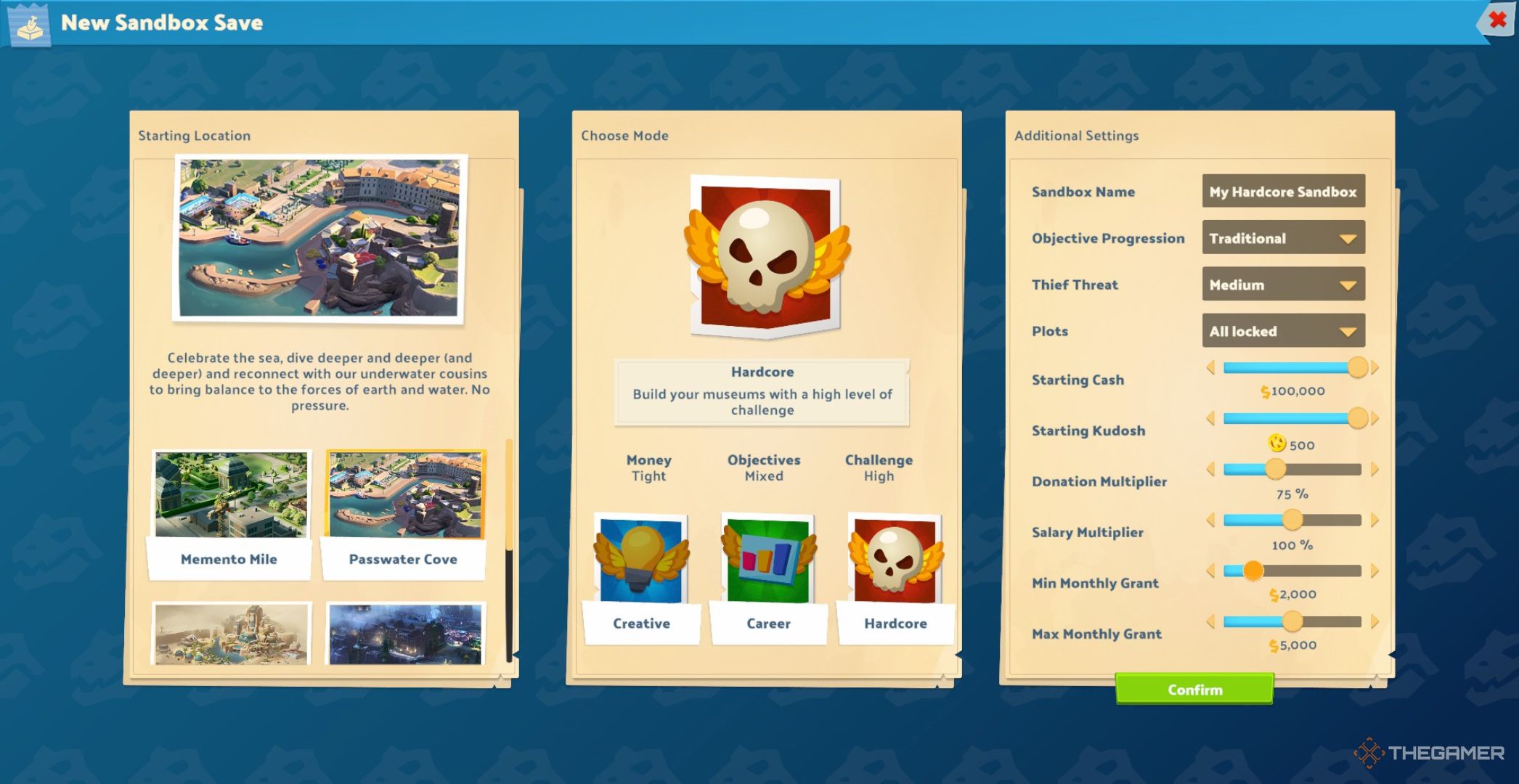 - ハードコアはあなたに与えます最も制限的な最大設定、あなたにそのことを強要します最初からはるかに低い現金、そしてあなたが本当にあなたの博物館をできるだけ効率的に計画し、作るようにしますエラーのための小さなスペース、特定の設定を調整しても。