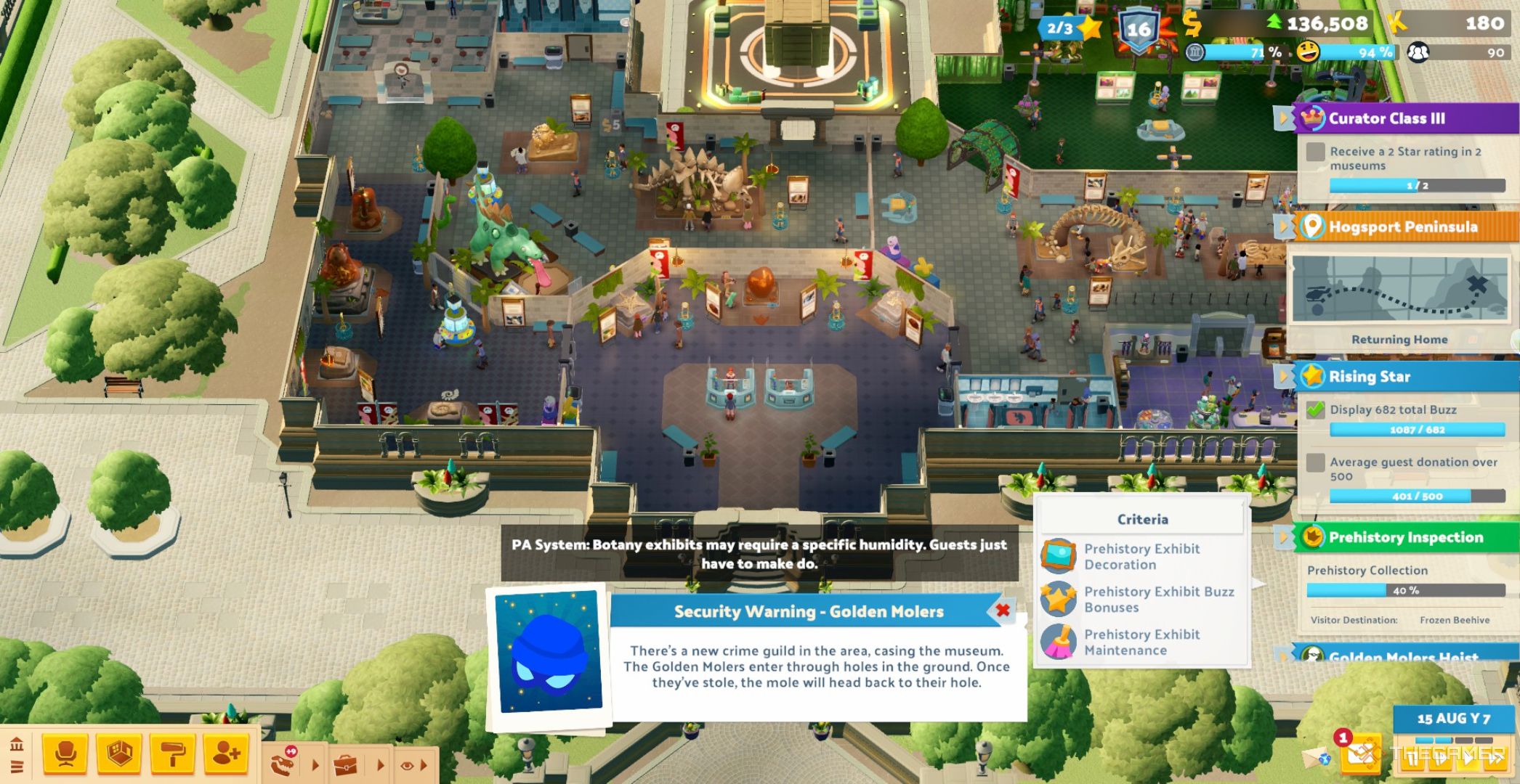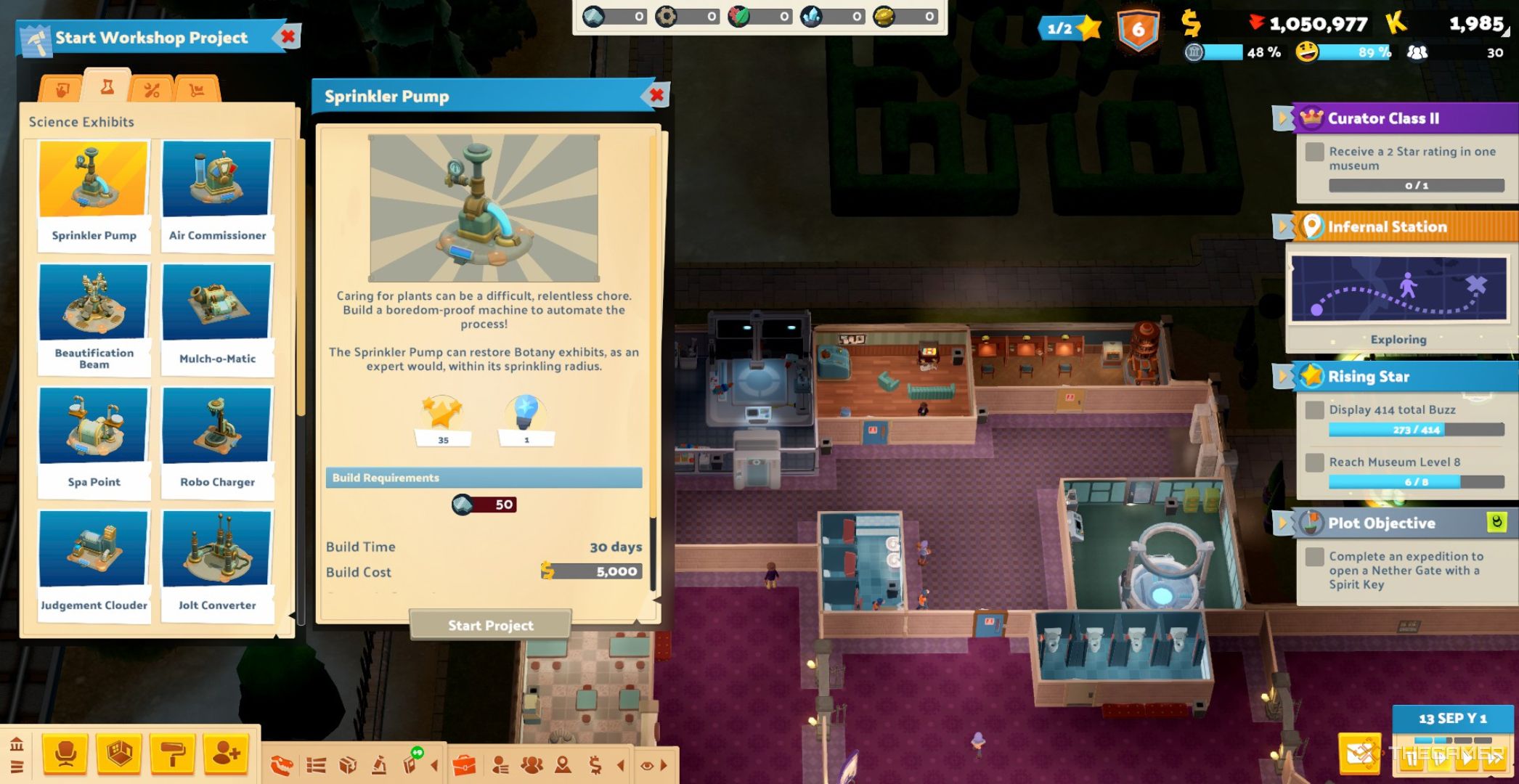 - あなたがタフなものが欲しい、から始めますハードコアモードとのみ現金の基本額、そして自分自身に挑戦します博物館の各プロットを別のテーマにします。あなたはできるそのテーマの外に出ることを禁じていますこれらのプロットのロックを解除し、開始資金が不足し、オプションで低い寄付があると、さらに自分自身を必要とすることができます低いバズの展示を使用するためだけです。