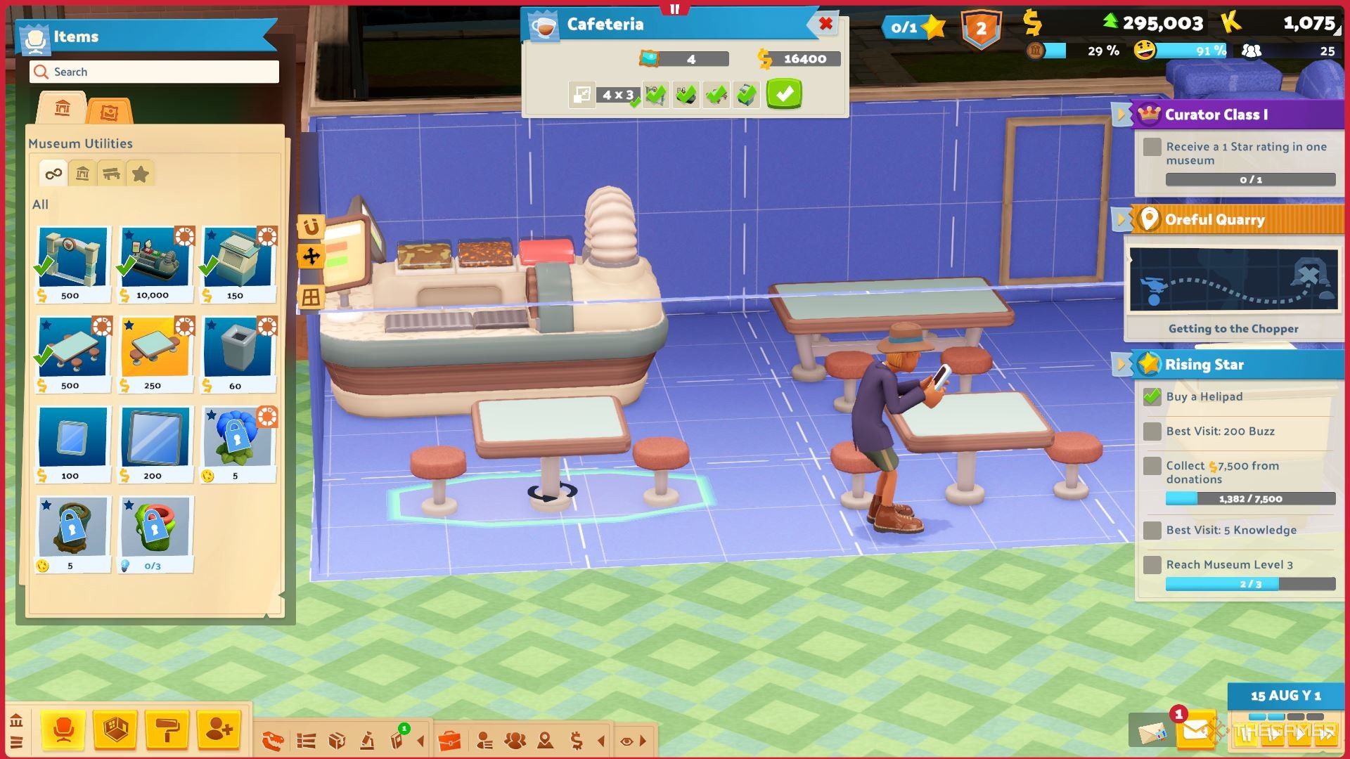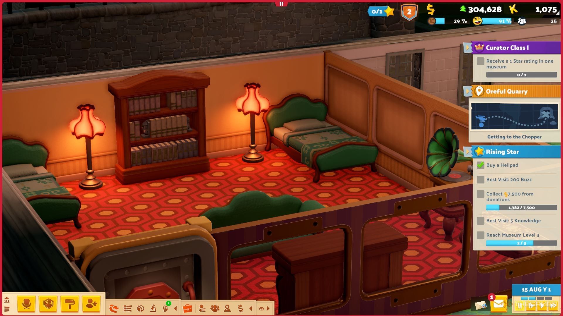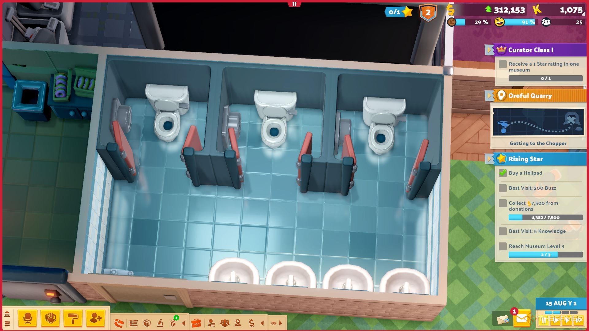 最初に2つのポイント博物館で博物館をキュレーションすることへの冒険を始めたとき、あなたは最終的にあなたになるさまざまな部屋についてすべてを学びます各博物館の施設に基づいて構築する必要があります繁栄し、成功した博物館を持つためにロックを解除します!スタッフがあらゆる種類の新しい知識セットや遠征特典でトレーニングする場所であるかどうか、訪問者が資本主義との機会を記念するギフトショップであろうと、公共のバスルームだけで、成功するためには各博物館にいくつかの異なる部屋が必要です。
