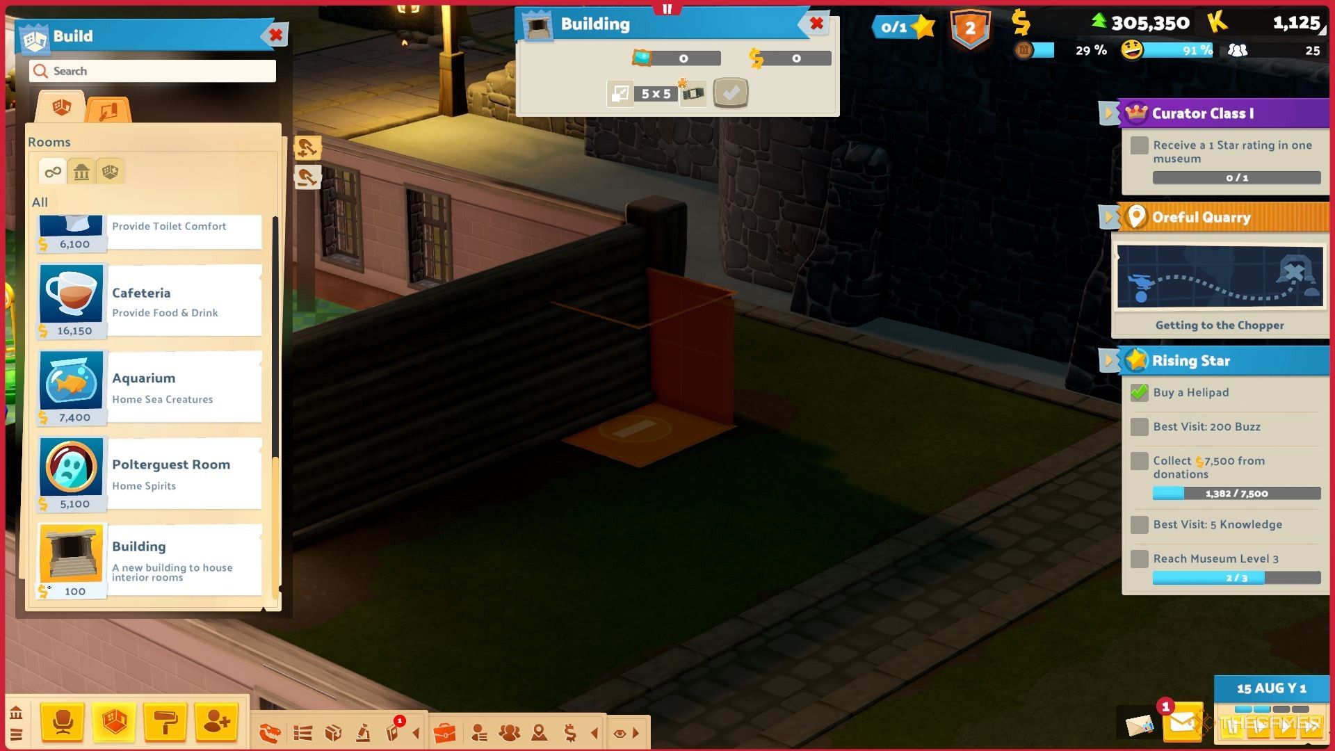 さまざまな種類の博物館に同様の部屋のレイアウトを構築することに気付いた場合、いつでもできます部屋のデザインをテンプレートとして保存します他の場所での配置を容易にするため。一部の部屋は、他の部屋、特に博物館間であまりバリエーションがない部屋よりもコピーします。スタッフはあなたの博物館全体で同じトレーニングエリアとワークショップを必要としますが、ギフトショップやポルターガイストルームのような特別な場所では、場所間でさらにカスタマイズする必要があります。