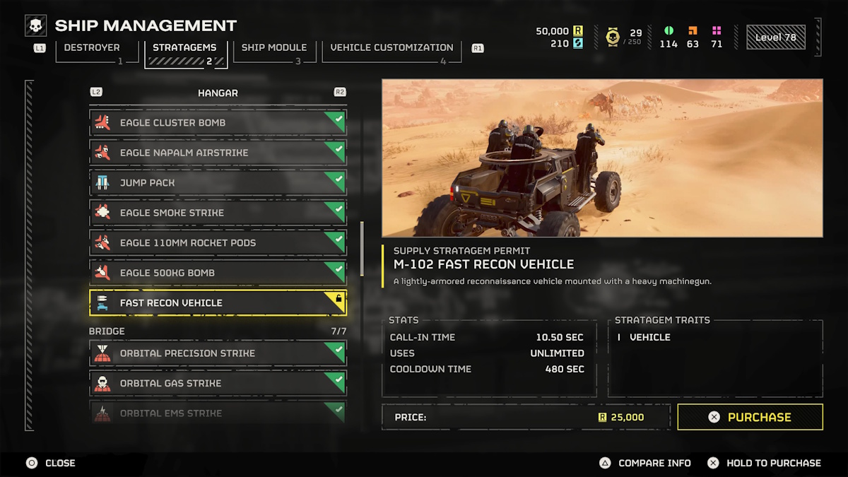 いずれにせよ、彼らが青い血をこぼしたので、コミュニティは準備する必要があります。高速偵察車両は今日、戦略として利用できます。スーパー駆逐艦船の船管理メニューから購入できます。ロックを解除するのに25,000の要求スリップがかかり、無制限の用途が付属しています。