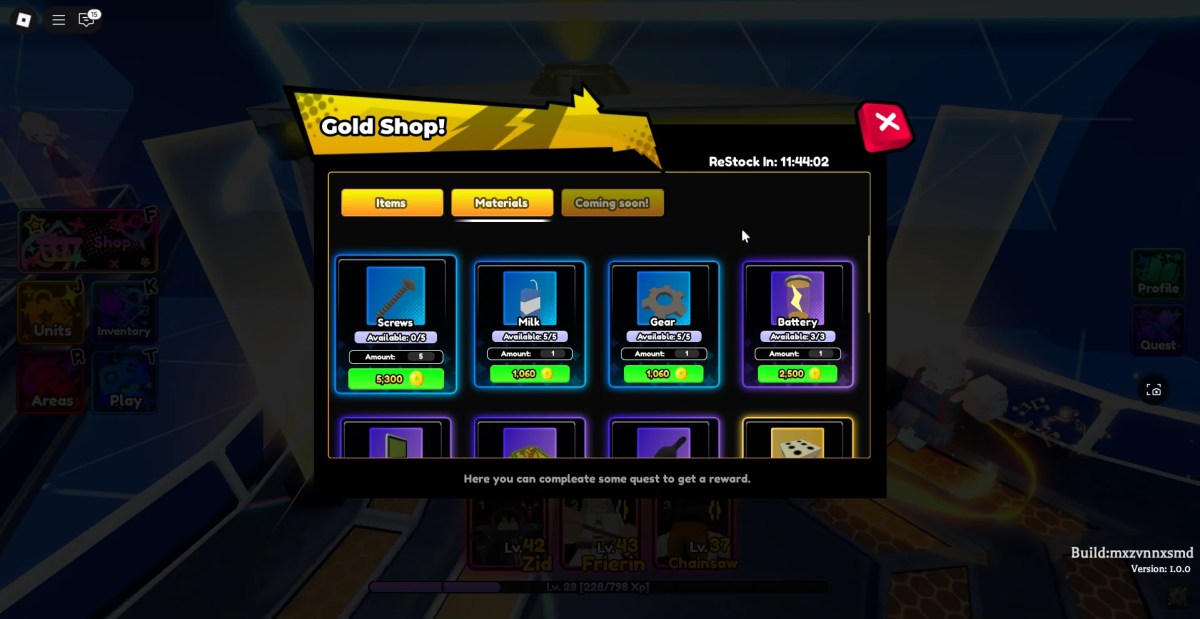 ゴールドショップは12時間ごとにリフレッシュし、そこからランダムに選択された材料を購入できます。
