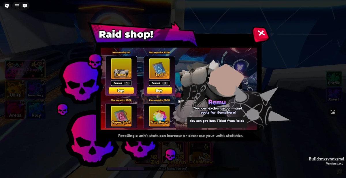 襲撃を完了すると、一定数のチケットが報酬として取得されます。これらのチケットを使用することができますRaid Shop NPCS購入する特性と統計リロール、そしていくつかの非常に強力です限られたユニット、レムのように。
