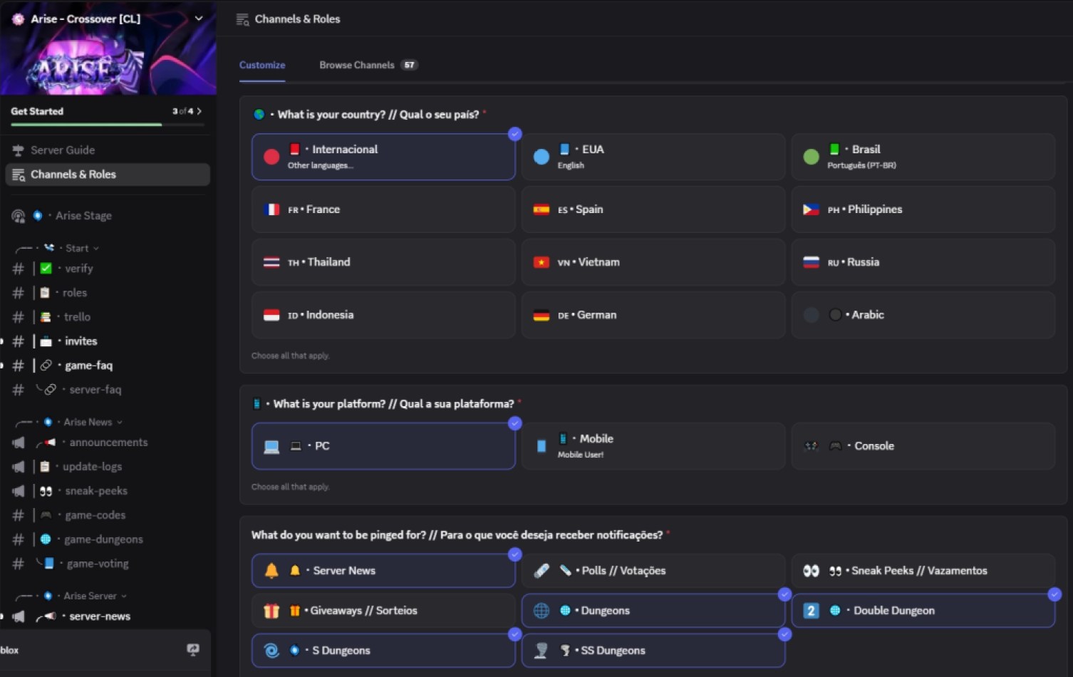 Arise Crossover Discord Serverに自分に役割を追加して、新しいダンジョンゲートが開いたときに通知を受けることができます。