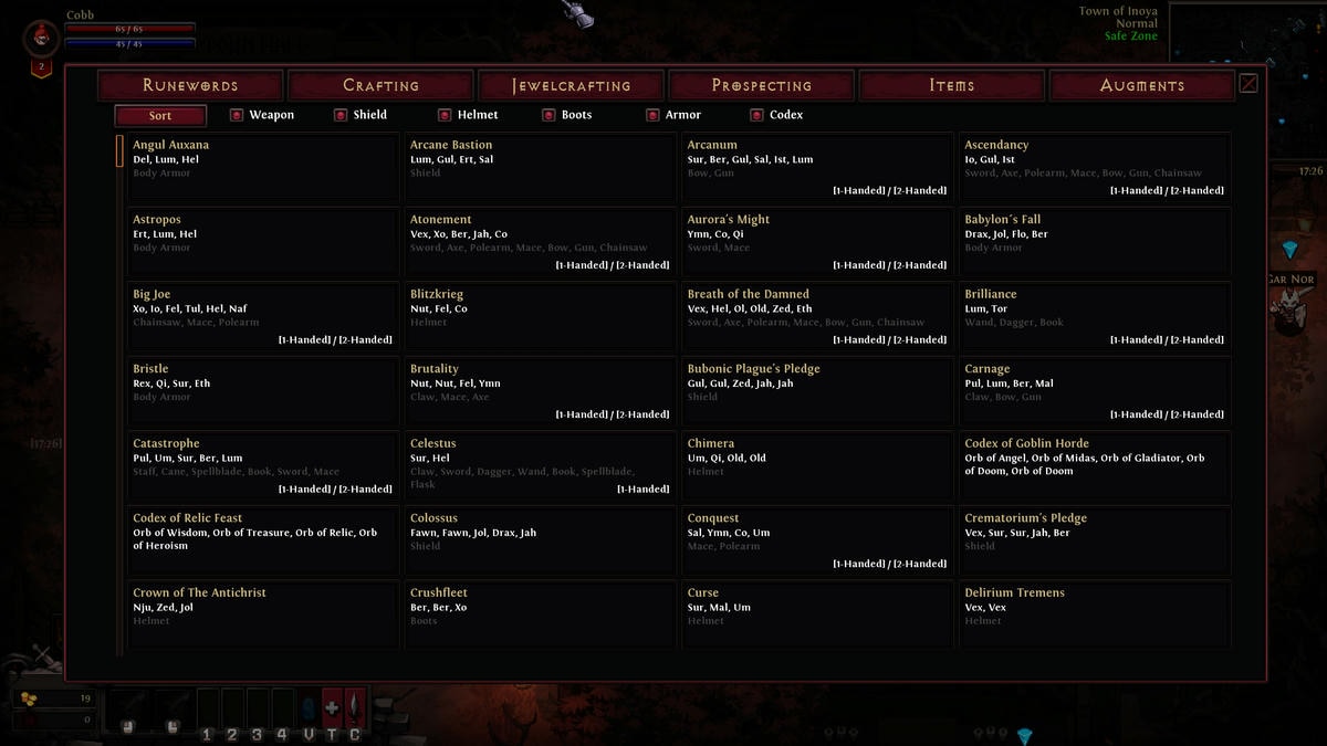 プレス本のアイコンを逃がして選択しますRunewords、Crafting Recipes、Jewellcrafting、Augments、アイテムリストなどを見ることができるゲーム内ジャーナルを開くために。