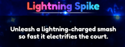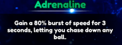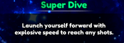 ![]() | •シンプルだが強力な3秒の速度ブースト。 | •アドレナリンは、攻撃と防御の両方に使用できるため、スーパーダイビングよりも柔軟性があります。 •それは3秒続くので、相手がネットに近づいている場合、別の高速ショットにショットを引っ張ることさえできます。 |