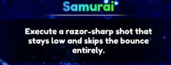 ![]() | •次のショットを低くして、スコアを獲得するために2回目のバウンスを必要としないようにします。 | •Samuraiはタイミングに関するものです。なぜなら、ノー秒バウンスのルールバイパスで自由なポイントを獲得できるからです。 •いつそれを行うか練習すると、フリーポイントボタンのように動作します。 |