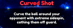 ![]() | •次のショットは、それを制御する方向に極端な曲線を持ちます。 | •対戦相手をだまして、曲線を制御できるので本当に良いことです。 •ライトニングスパイクよりも多くのスキルを必要としますが、それを狙っていますが、自由ポイントの可能性は同じです。 |