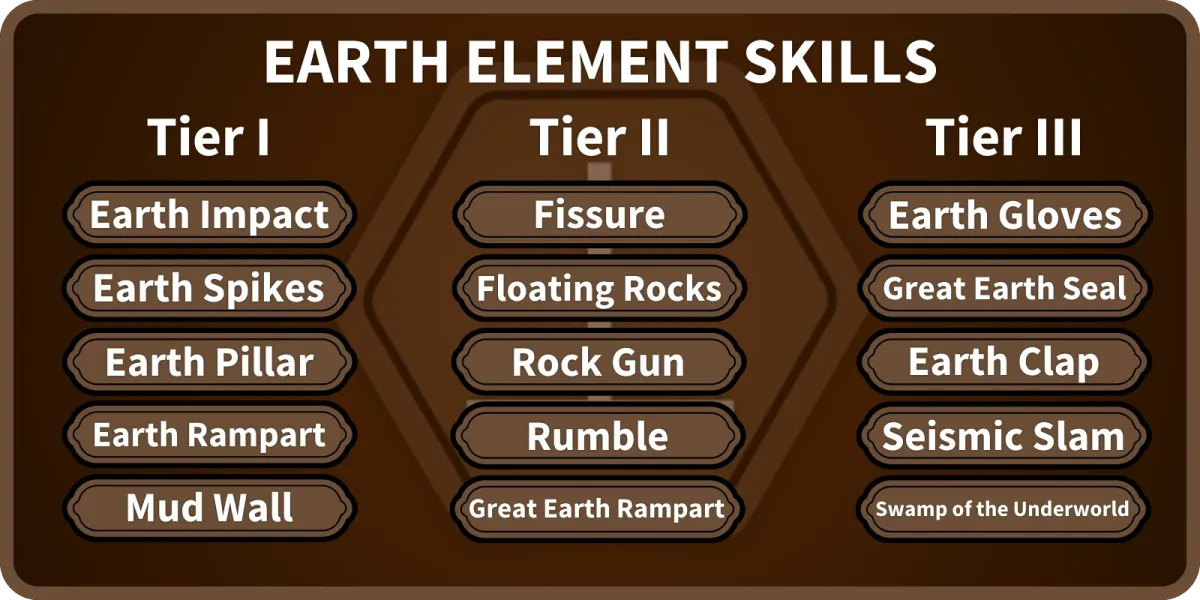 あなたが学ぶことができる地球要素スキルのリスト。