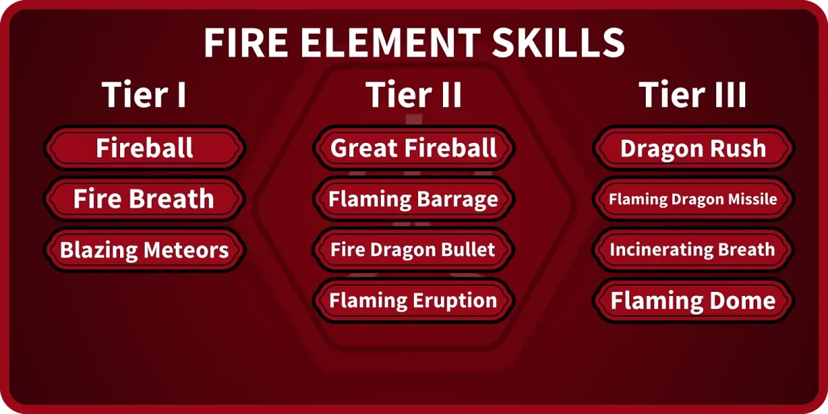 あなたが学ぶことができる火の要素スキルのリスト。