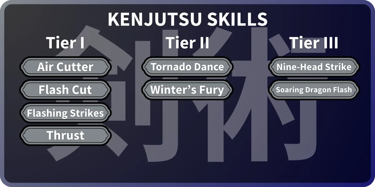 あなたが学ぶことができるKenjutsuスキルのリスト。
