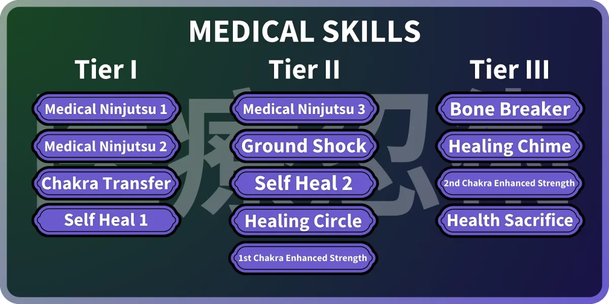 | Medical Ninjutsu 3 | の大幅に改善されたバージョンMedical Ninjutsu 1スキル。 | 6 |