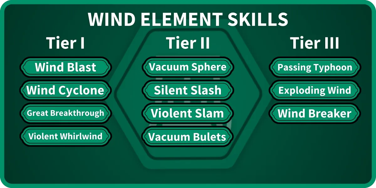 あなたが学ぶことができる風の要素スキルのリスト。