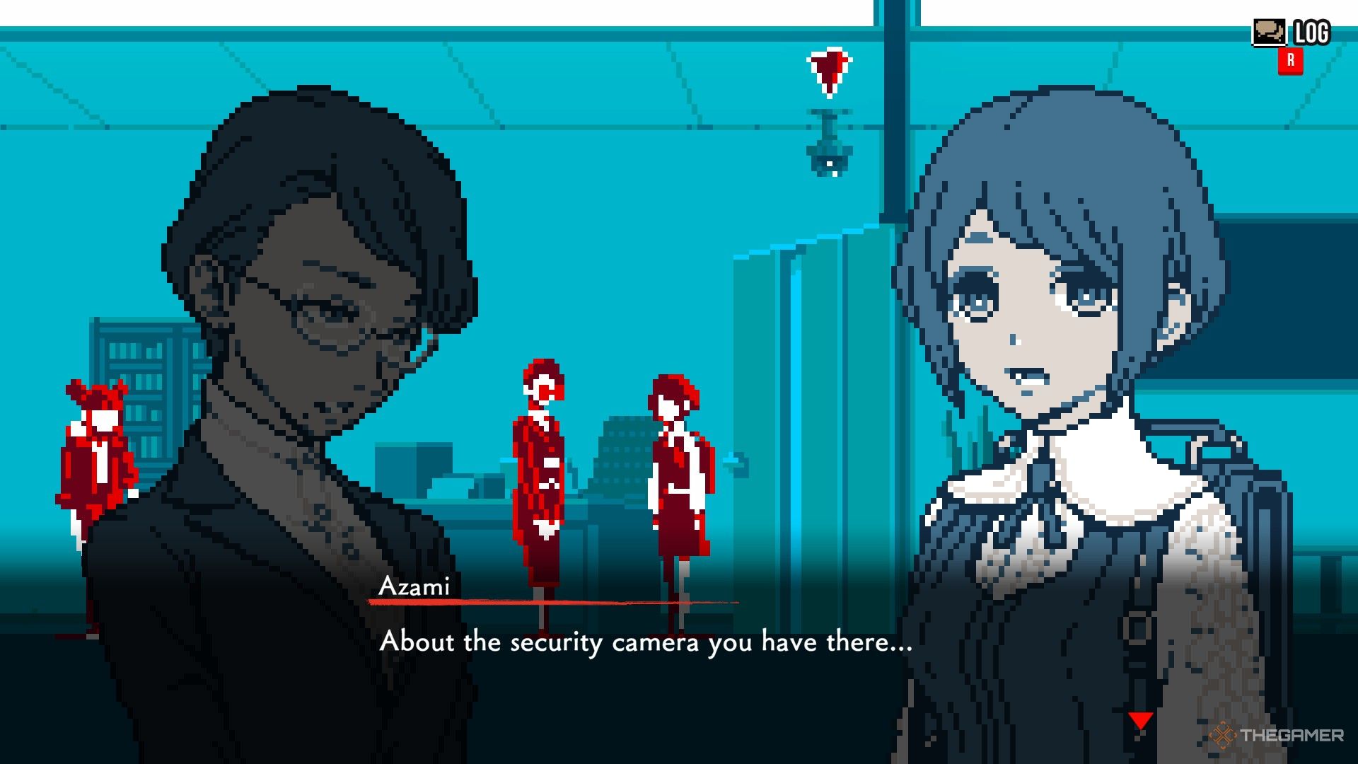 セキュリティカメラと対話します秘書の右側の天井に、セキュリティカメラについて尋ねます。また黒崎に話してくださいそして、彼に「セキュリティカムイメージ」について尋ねます。これにより、最後の手がかりが得られます。