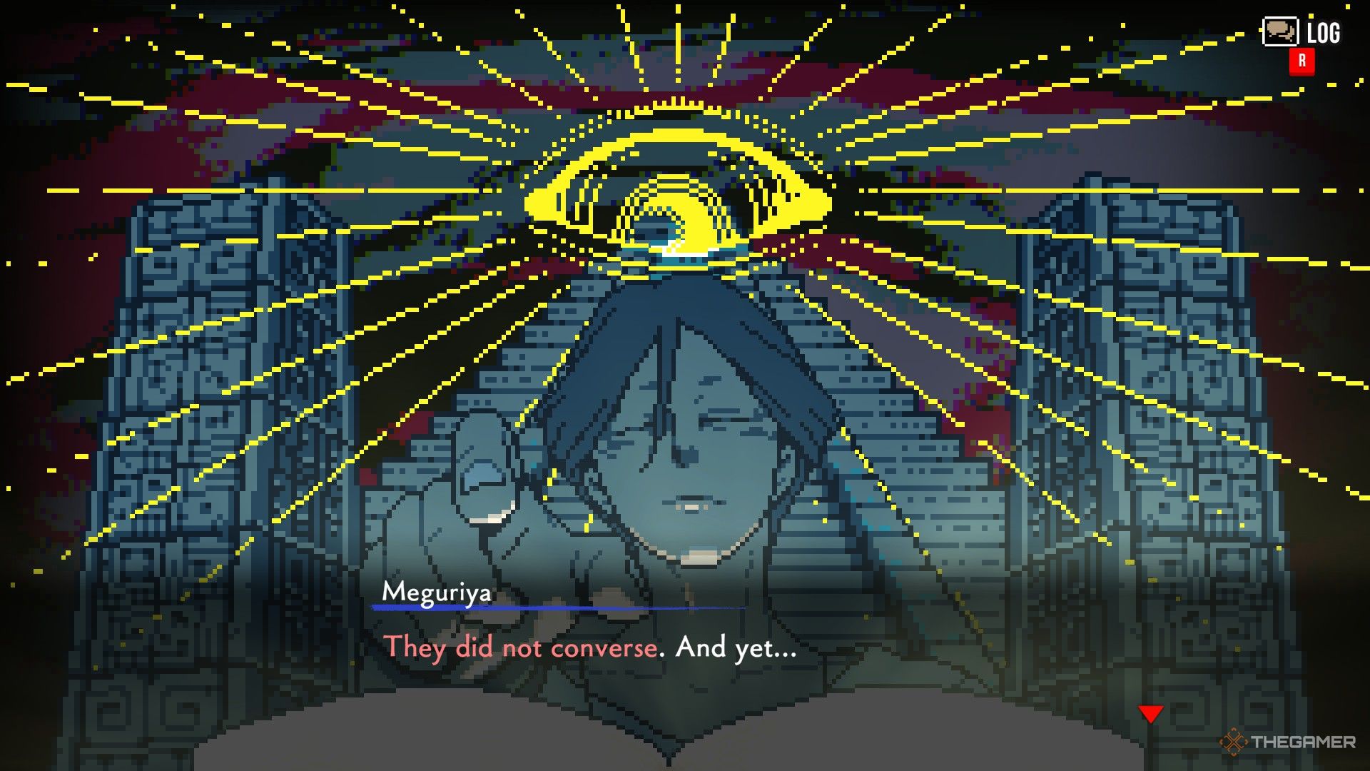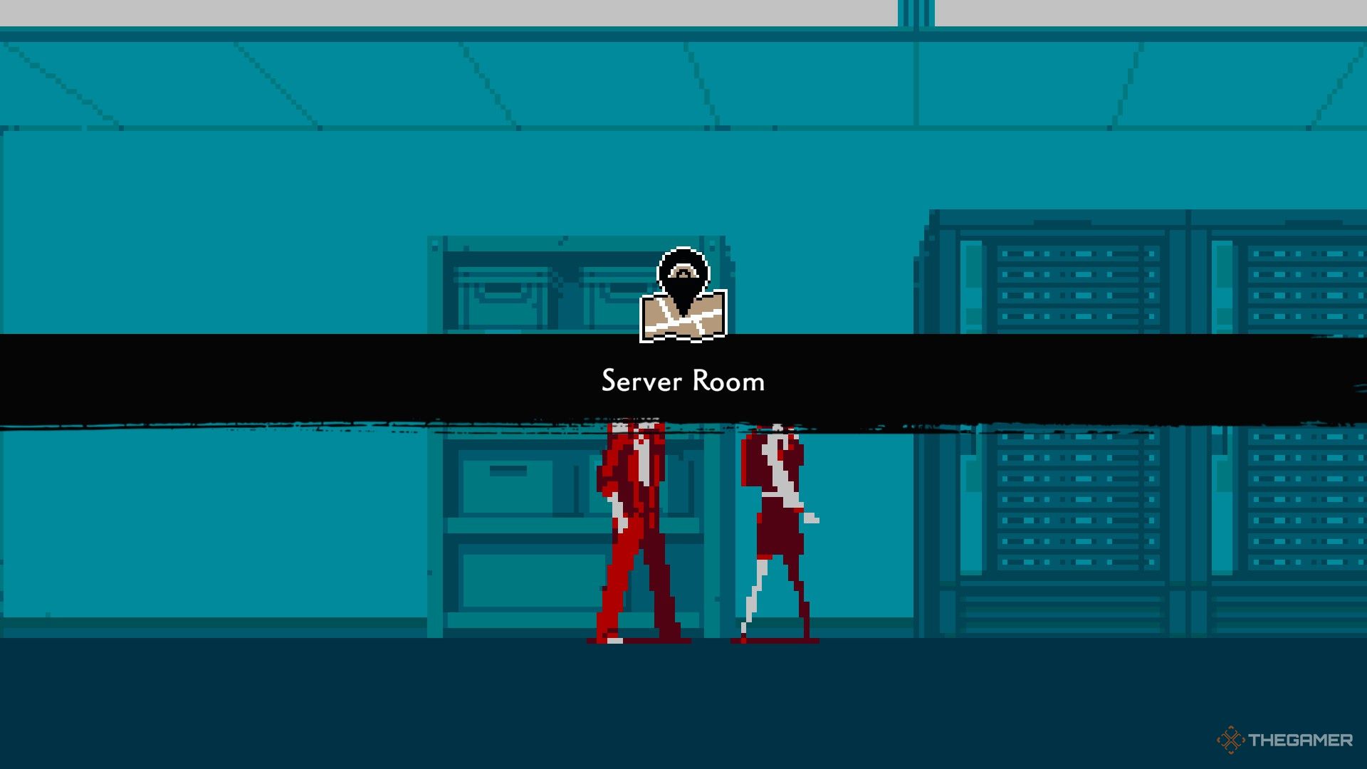- もう一度眼鏡をかけます。サーバーキャビネットの近くの影の人物と対話します中田の右に。次に、メガネを脱いでくださいサーバーキャビネットを選択し、「検査」を選択します。