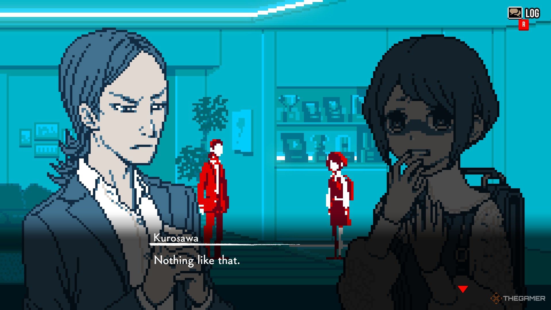 アザミが自分のドッペルゲンガーを見た後、サーバールームに到着します。ここでは、黒澤以外に、新しい人と話す人がいます。合計7つの手がかりを見つける必要があります。