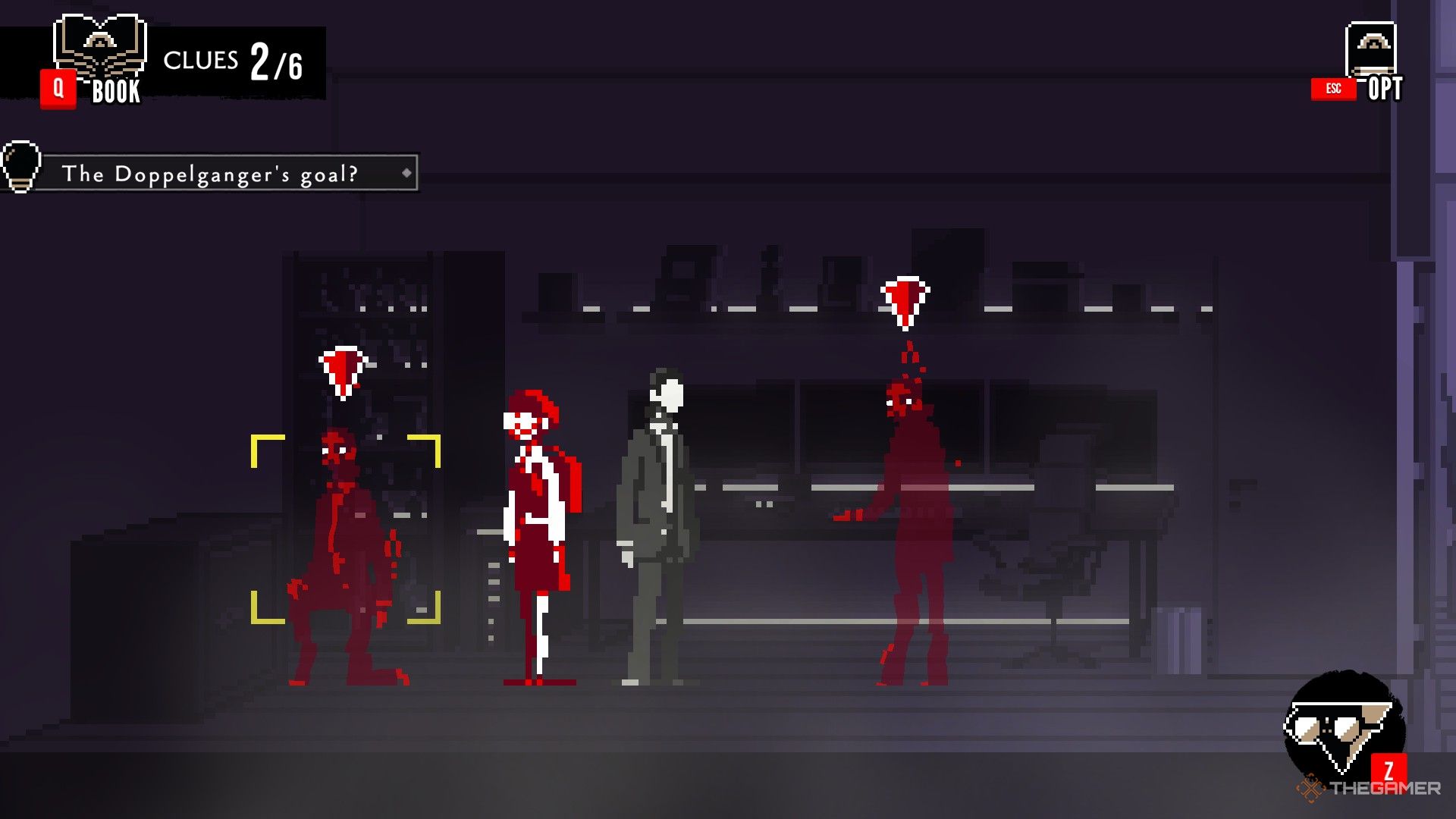 「ドッペルゲンガーの目標?」をクリックします。左に。仮説を立てる必要があります。この仮説を完了すると、4番目の手がかりが得られます。