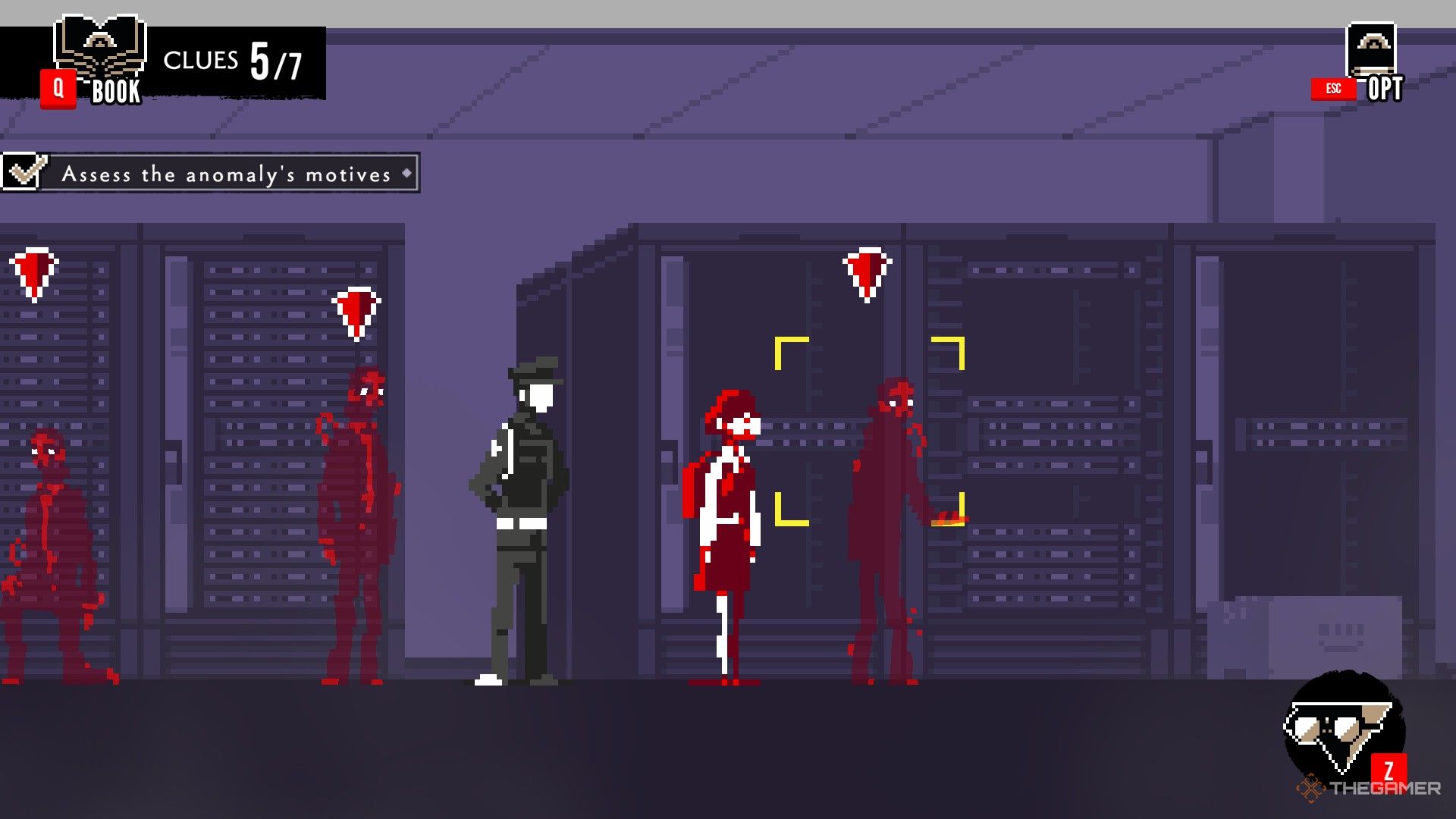 次に、メガネを脱いでくださいサーバーキャビネットと対話します影の姿が立っていたところ。もう一度ナカタと話してください6番目の手がかりを得るためのサーバーキャビネットについて。ジャスミンと話してくださいすべてのダイアログオプションを使い果たします。これにより、「異常はどのようなデータがありますか?」のロックが解除されます。左に。それをクリックして、仮説を解決します。