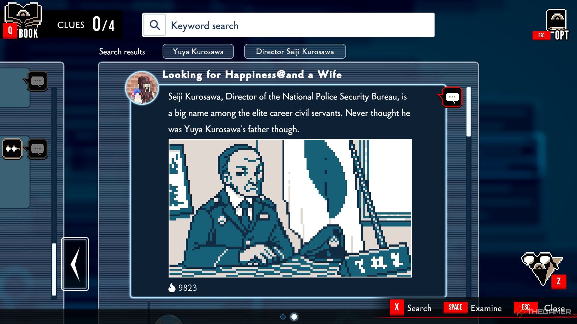 - 次、父親のセイジと話してください、すべての対話を排出します。これにより、最初の手がかりが得られます。左側の「警察の頭」をクリックしてください、そしてセイジについての正解は、「日本内のVIPセキュリティ」です。